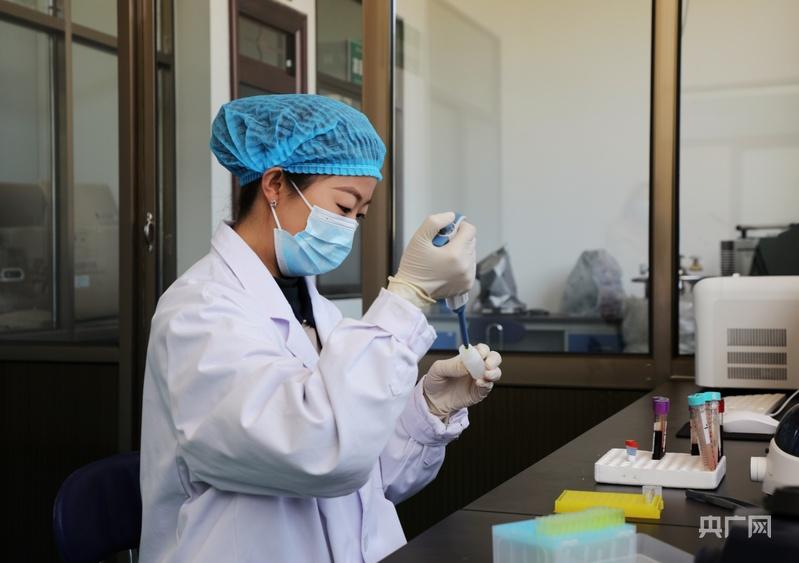 甘肅慶環(huán)肉羊制種有限公司檢測員正在做多胎基因檢測(央廣網(wǎng)發(fā) 郭海霞 攝)