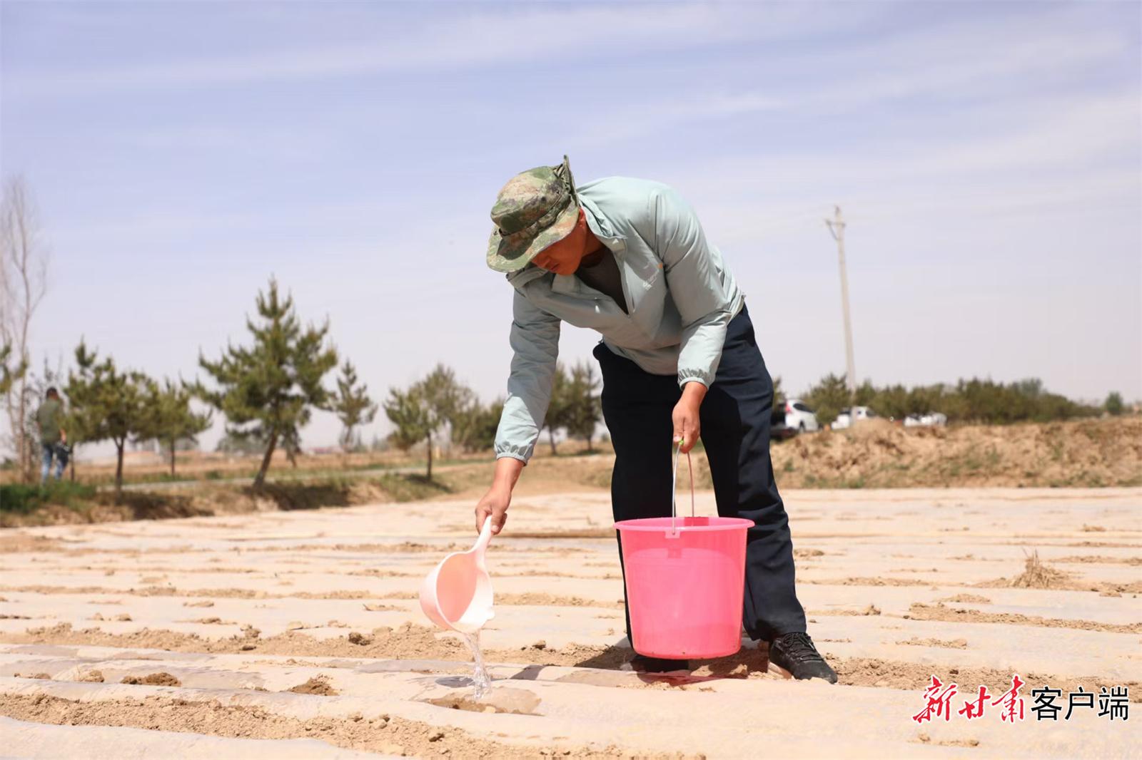 群眾采取點(diǎn)灌點(diǎn)澆措施保苗。