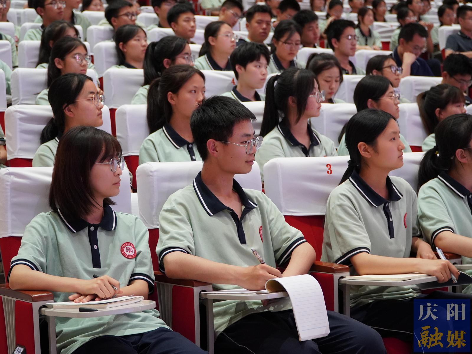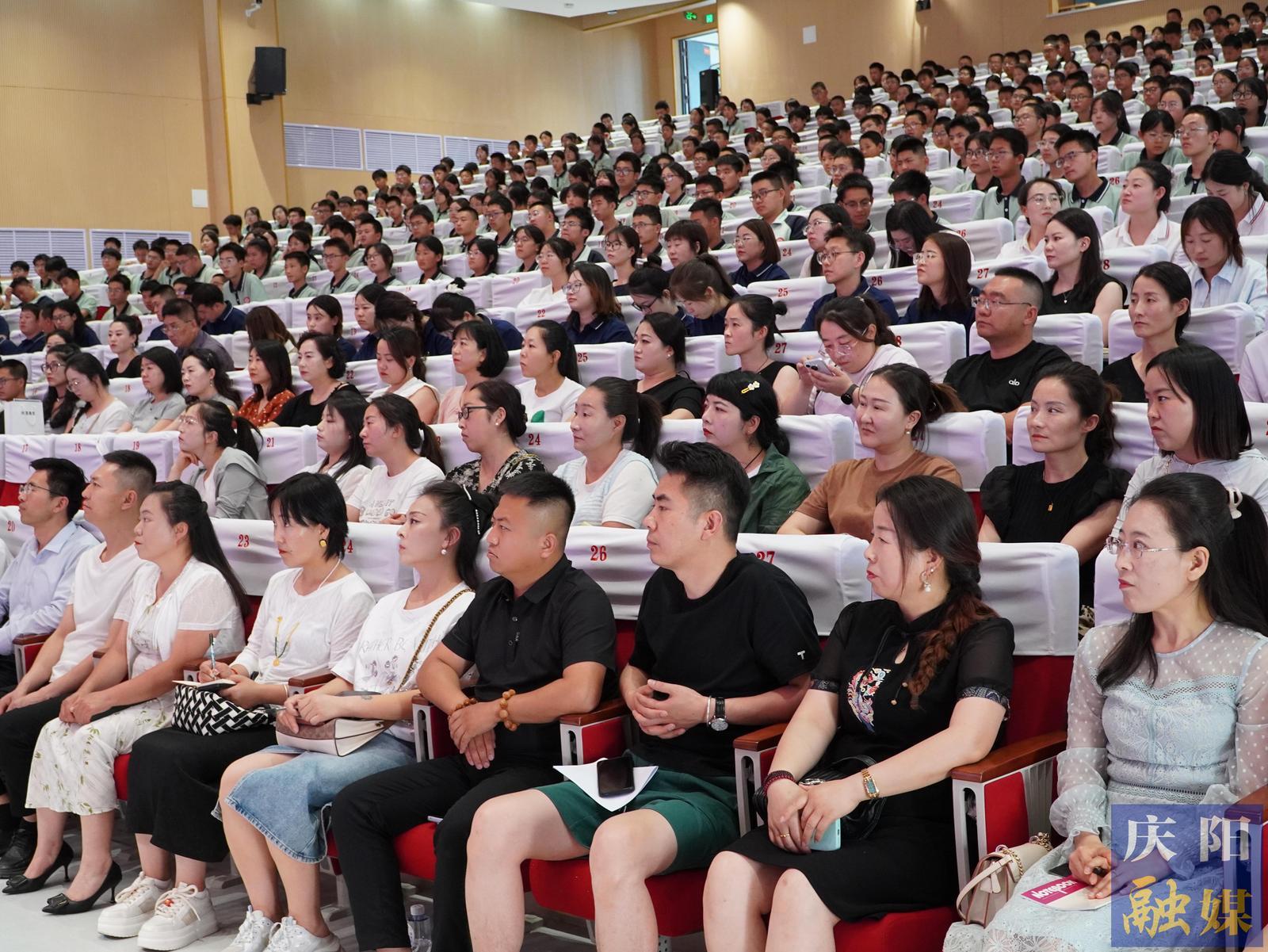 來自西峰區(qū)青少年活動(dòng)中心、顯勝實(shí)驗(yàn)學(xué)校、黃官寨實(shí)驗(yàn)學(xué)校、北街實(shí)驗(yàn)學(xué)校、南街小學(xué)、團(tuán)結(jié)小學(xué)的教師代表,學(xué)院路實(shí)驗(yàn)學(xué)校全體教師、初一及高一年級(jí)全體學(xué)生及家長(zhǎng)代表等近千人齊聚一堂,共同聆聽英雄故事,感悟空軍精神。