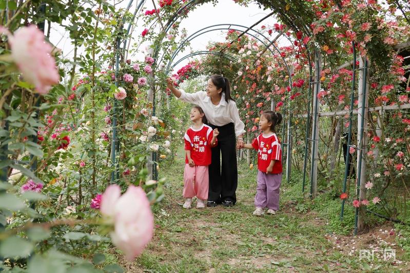 “今天特意和朋友一起來賞花。這里環(huán)境不錯,月季的種類也多,還能品嘗農家美食,是個休閑打卡的好地方,比逛城市公園更有野趣?!庇慰屠钔畬皡^(qū)美景贊不絕口。