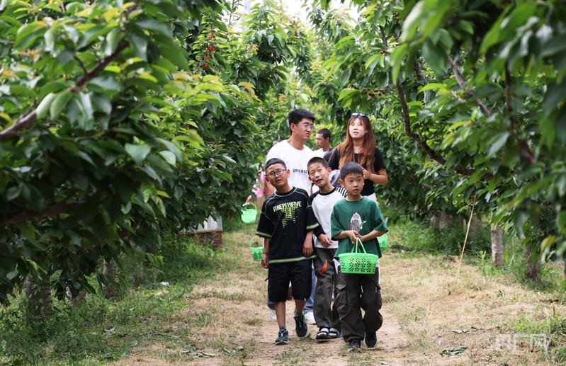 賞花游持續(xù)升溫,采摘游同樣激活鄉(xiāng)村旅游消費熱潮。眼下,正值露天櫻桃成熟時節(jié)。連日來,位于西峰區(qū)彭原鎮(zhèn)顧咀村的慶陽雙姓種養(yǎng)殖農民專業(yè)合作社紅瑪瑙有機櫻桃采摘園里,翠綠枝葉間,瑪瑙般的櫻桃嬌艷欲滴,三三兩兩的游客穿梭于果樹間,采摘、品嘗。