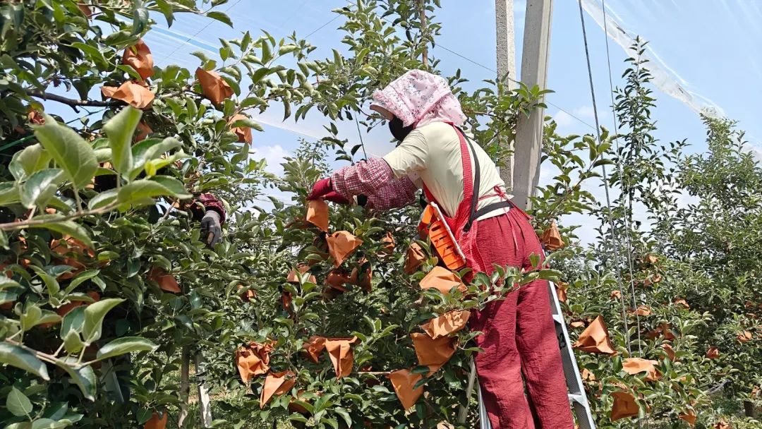 套袋作業(yè)是果園管理的關(guān)鍵一環(huán),小小紙袋為蘋果撐起一片“晴空”,能有效抵御病蟲侵害與風雨侵襲,更能鎖住蘋果自然光澤與細膩口感,產(chǎn)出高品質(zhì)果實。