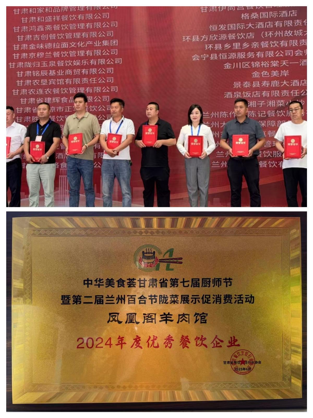 活動(dòng)同步舉辦專業(yè)評(píng)選,授予個(gè)人菜品展示特金獎(jiǎng)、金獎(jiǎng)、銀獎(jiǎng)及金廚獎(jiǎng),并推出一批2024年度優(yōu)秀餐飲企業(yè)、職業(yè)院校、供應(yīng)商等。鳳凰閣環(huán)縣羊羔肉榮獲2024年年度甘肅省優(yōu)秀餐飲企業(yè)。