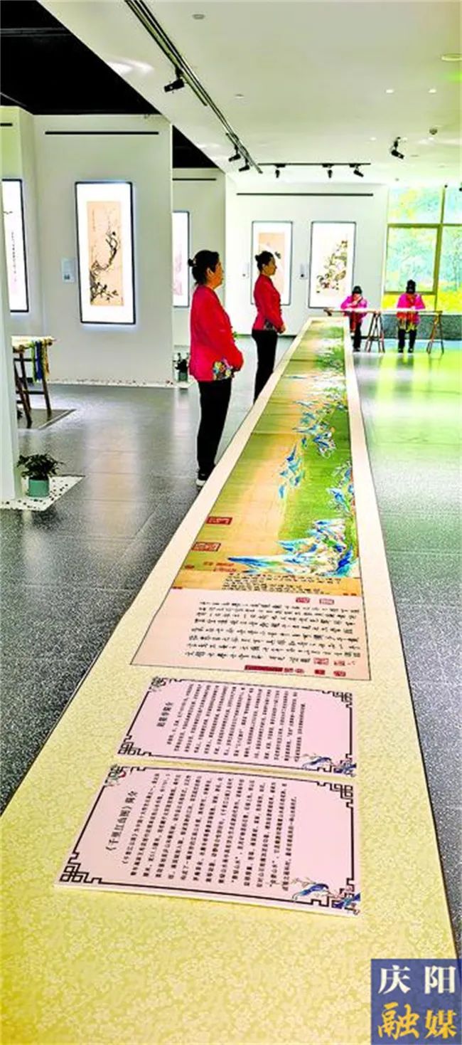 今年5月14日,“高原媽媽”國際藝術(shù)館在杭州正式開館,170余幅承載著慶陽婦女智慧與夢(mèng)想的刺繡作品,在1100平方米的展館中綻放異彩,來自千里之外鎮(zhèn)原縣的20位繡娘在這里首次展示技藝,打開了走向國際藝術(shù)舞臺(tái)的窗口。