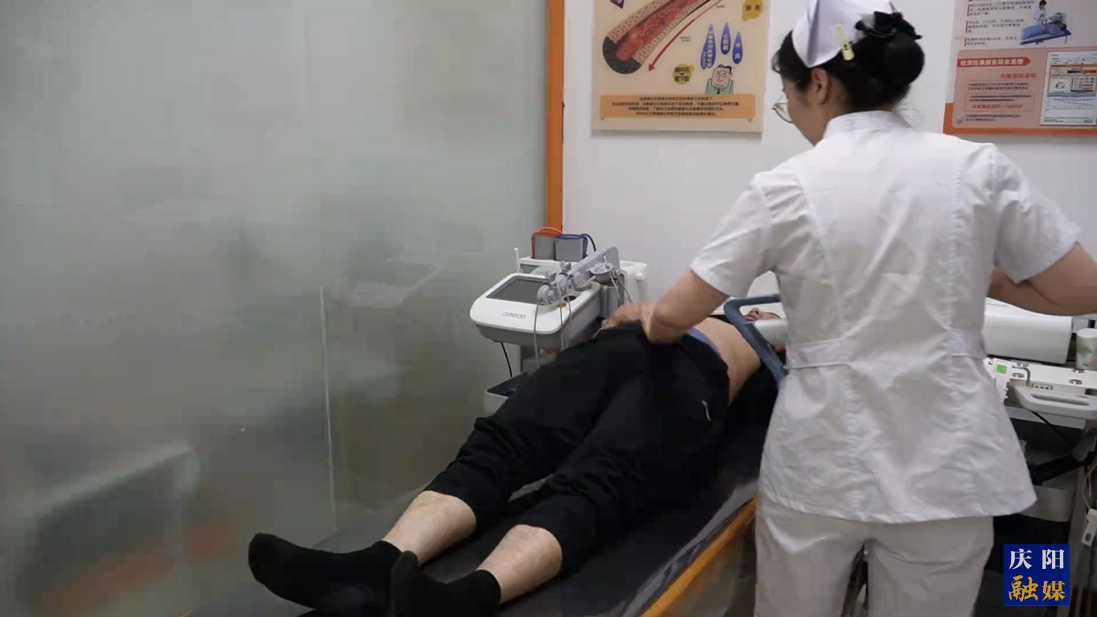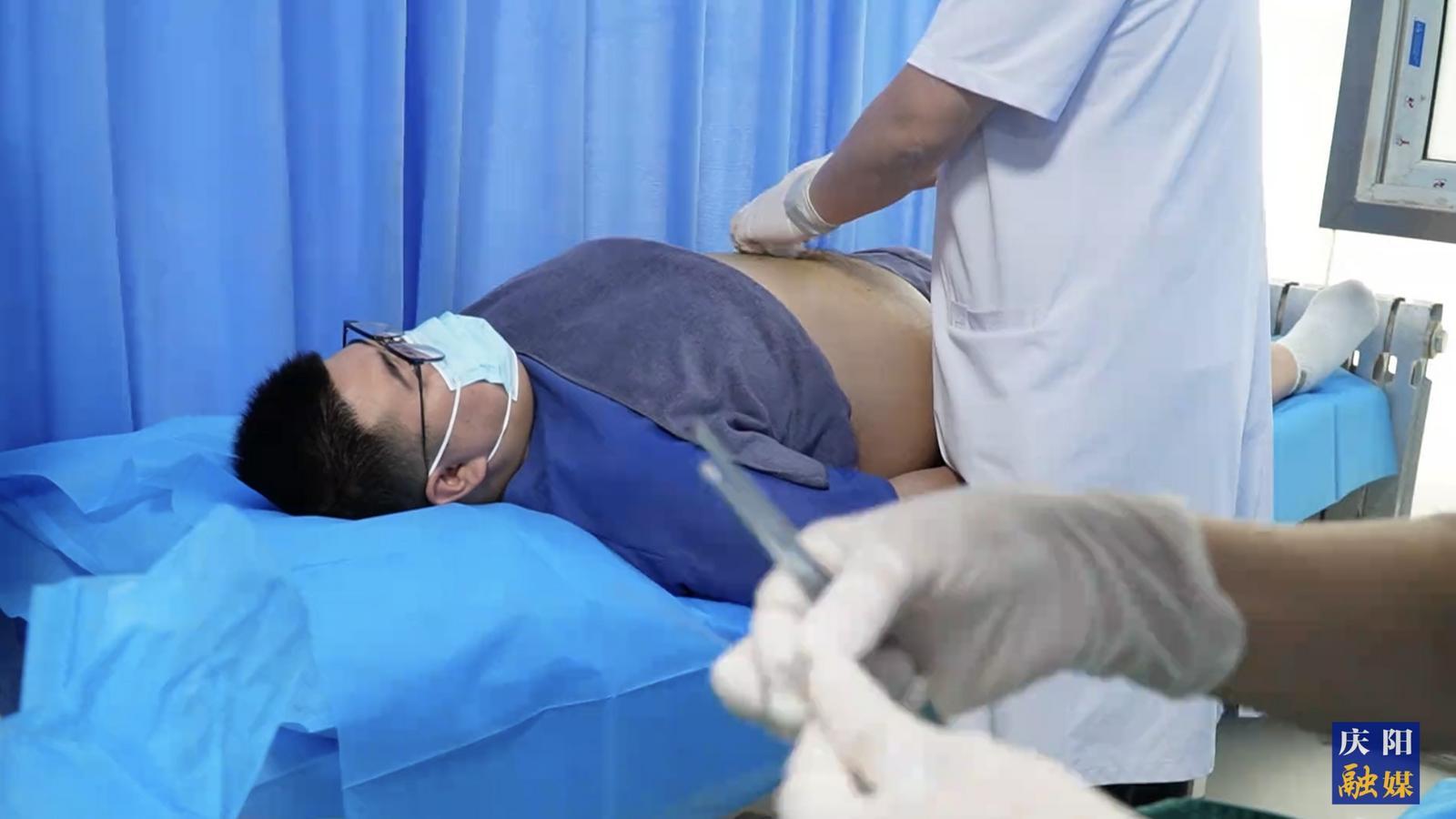 慶陽(yáng)市中醫(yī)醫(yī)院醫(yī)生正在為患者進(jìn)行穴位埋線治療。