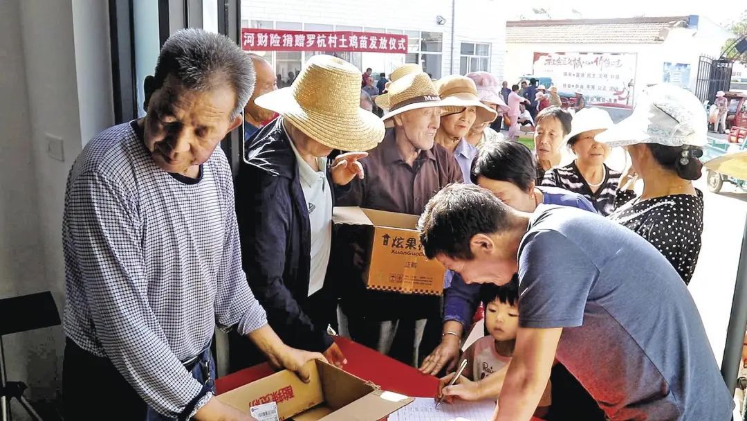 6月11日上午,羅杭村黨群服務(wù)中心院內(nèi)熱鬧非凡,205戶村民領(lǐng)到免費雞苗2600只,配套的免費雞飼料也同步發(fā)放。這是黃河財險連續(xù)第三年在羅杭村開展助農(nóng)幫扶活動。
