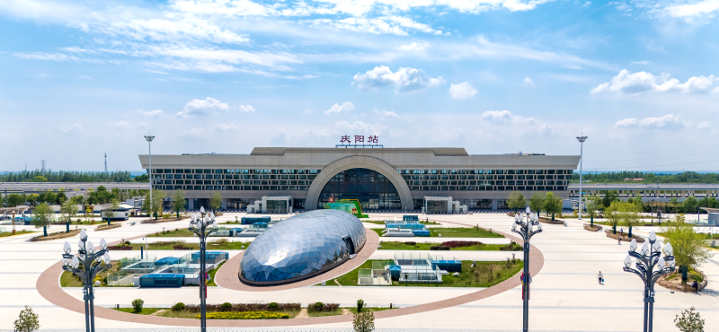 銀西高鐵(甘肅段)將寧縣、慶陽、慶城、曲子、環(huán)縣、洪德(越行站)、惠安堡7座車站串聯(lián)起來,讓昔日的“隴東糧倉”與全國高鐵網(wǎng)緊密相連。慶陽站,作為銀西高鐵甘肅段的核心樞紐,其站房設(shè)計(jì)是黃土高原文化的現(xiàn)代演繹。站房以“黃土大塬”為設(shè)計(jì)靈感,起伏的屋面線條宛如黃土層積淀千年的滄桑痕跡,立面柱廊借鑒了窯洞的拱形元素,巧妙地將傳統(tǒng)民居的智慧與現(xiàn)代建筑美學(xué)融合在一起。