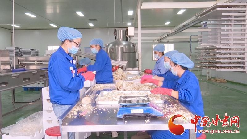 走進甘肅聚廣利農(nóng)業(yè)科技有限公司萬噸果蔬加工車間,工人們正在清理、分揀平菇,一筐筐剛采摘的新鮮平菇經(jīng)過前期處理裝盤后送進了自動化冷凍凍干生產(chǎn)線,再經(jīng)過數(shù)小時特殊工藝處理,凍干平菇就完成了。在這個車間,蘋果、草莓、香菜等各種果蔬都能加工成凍干產(chǎn)品。