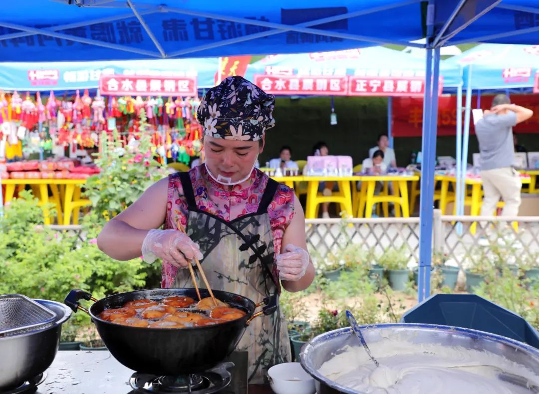 在生態(tài)農(nóng)莊負(fù)責(zé)人楊清艷的精心籌備下,來自環(huán)縣各鄉(xiāng)鎮(zhèn)的美食展銷區(qū)紛紛亮出了自己的看家本領(lǐng),煎炒烹炸、蒸煮燙涮忙得不亦樂乎,細(xì)膩的燕面柔柔、爽滑的涼皮、鮮香的包子,還有那別具一格的糖角角,甜蜜誘人。各式美食香氣襲人,引得游客紛紛駐足品嘗,農(nóng)村大集儼然成了美食天堂。游客趙萬海置身于人擠人的大集中:“這種能看到制作過程、能聽到叫賣聲、能聞到食物香氣的沉浸式趕集體驗(yàn),真是太棒了,不僅能品嘗美食的同時(shí),還能感受到濃濃的鄉(xiāng)村煙火氣?!?/p>