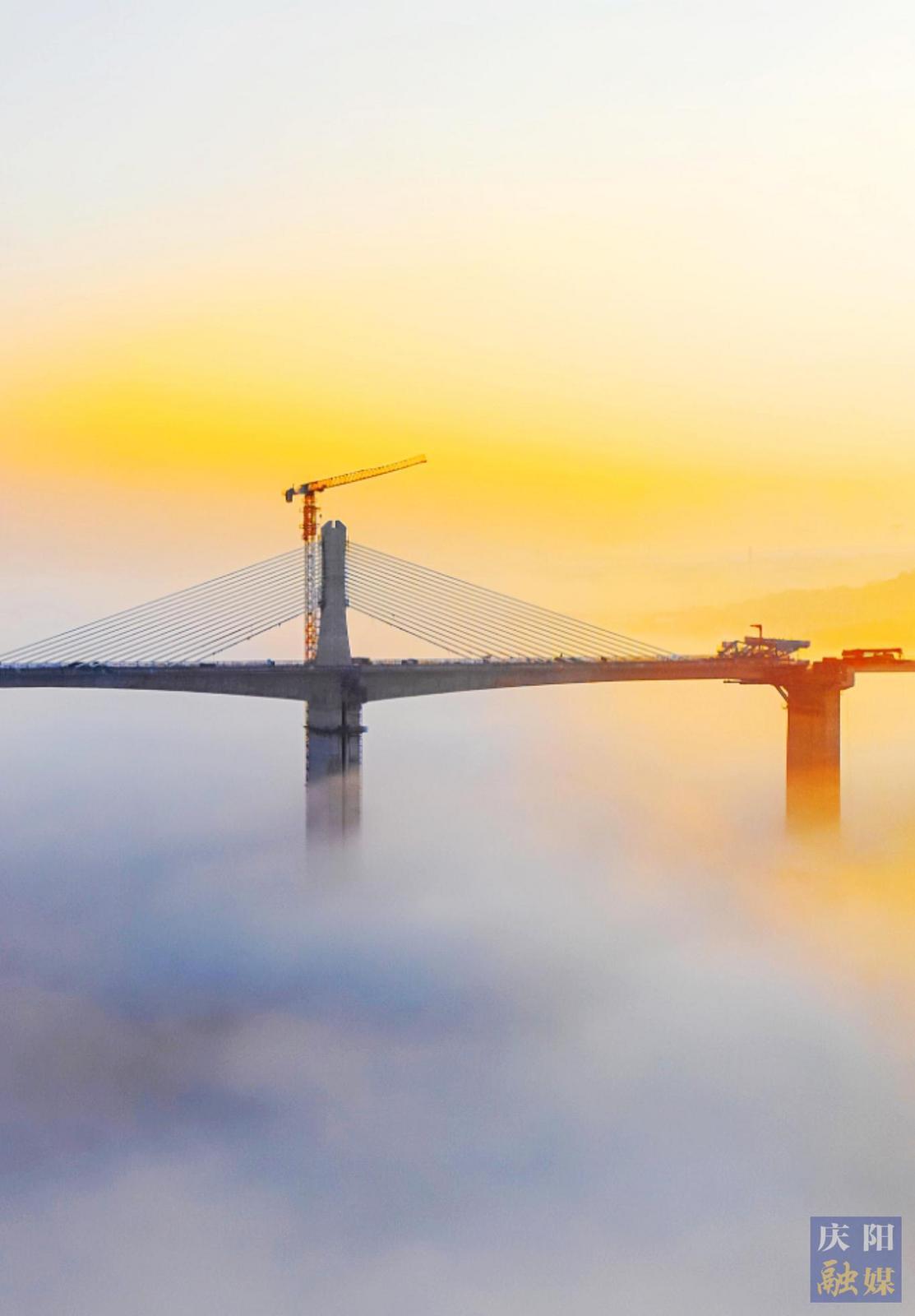 慶陽網(wǎng)訊(特約攝影 王啟寧)6月29日,合水縣境內(nèi),晨霧籠罩著G309線西合公路馬蓮河特大橋建設(shè)現(xiàn)場,工地上塔吊如林矗立,工程車往來穿梭,建設(shè)者們正全力推進項目建設(shè)。