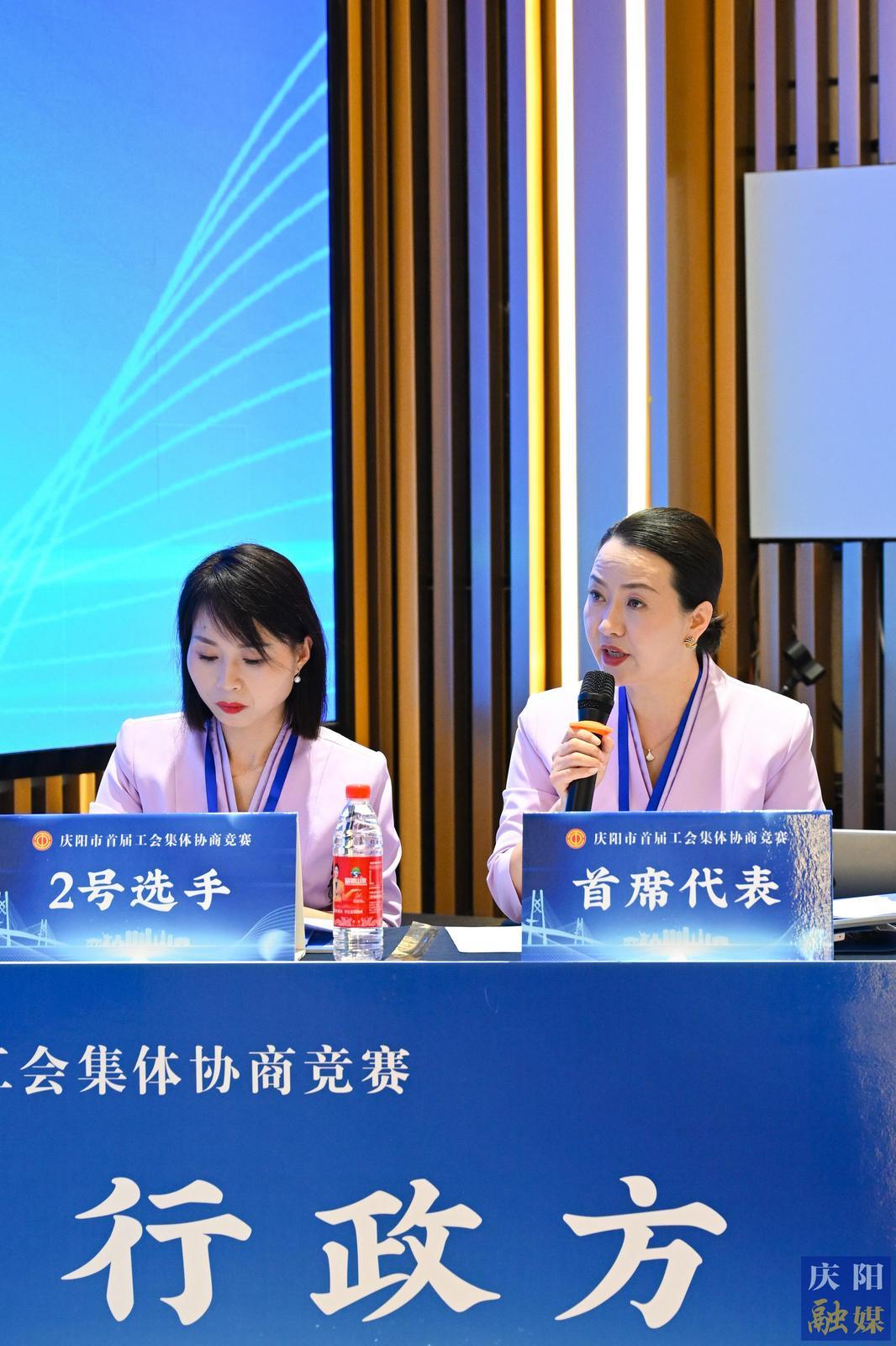 初賽第一輪:職工方慶陽公路事業(yè)發(fā)展中心代表隊與行政方正寧縣總工會代表隊協(xié)商現(xiàn)場。