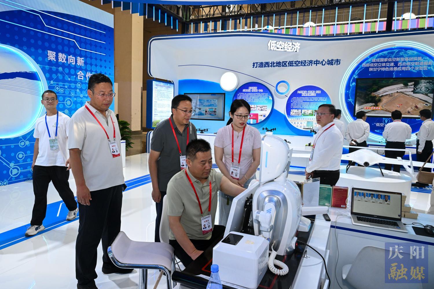 綜合能源化工區(qū)通過電子沙盤展示隴東綜合能源化工基地建設(shè)成果,重點(diǎn)呈現(xiàn)千萬噸級(jí)原油生產(chǎn)基地等"六大基地"發(fā)展格局。數(shù)字經(jīng)濟(jì)區(qū)突出慶陽數(shù)據(jù)中心集群建設(shè)成效,展示龍芯中科芯片等企業(yè)產(chǎn)品。低空經(jīng)濟(jì)區(qū)系統(tǒng)介紹慶陽打造西北低空經(jīng)濟(jì)中心城市的規(guī)劃布局,現(xiàn)場展示無人機(jī)產(chǎn)品。人工智能區(qū)呈現(xiàn)"人工智能+"應(yīng)用場景,包括AI數(shù)字人、中醫(yī)機(jī)器人等交互體驗(yàn)。