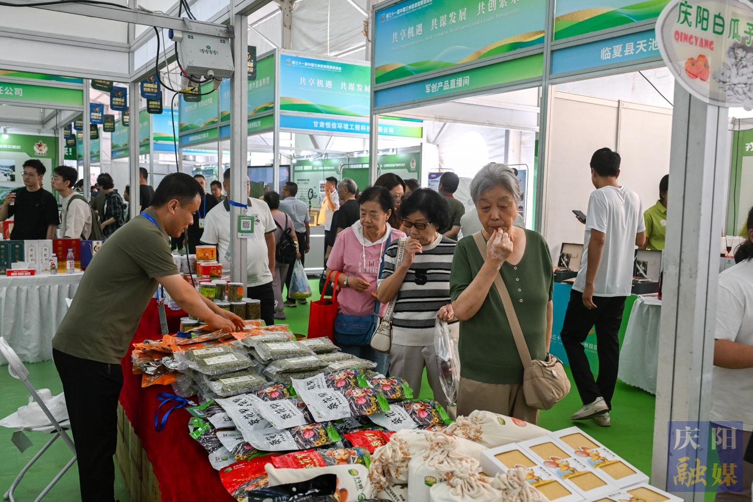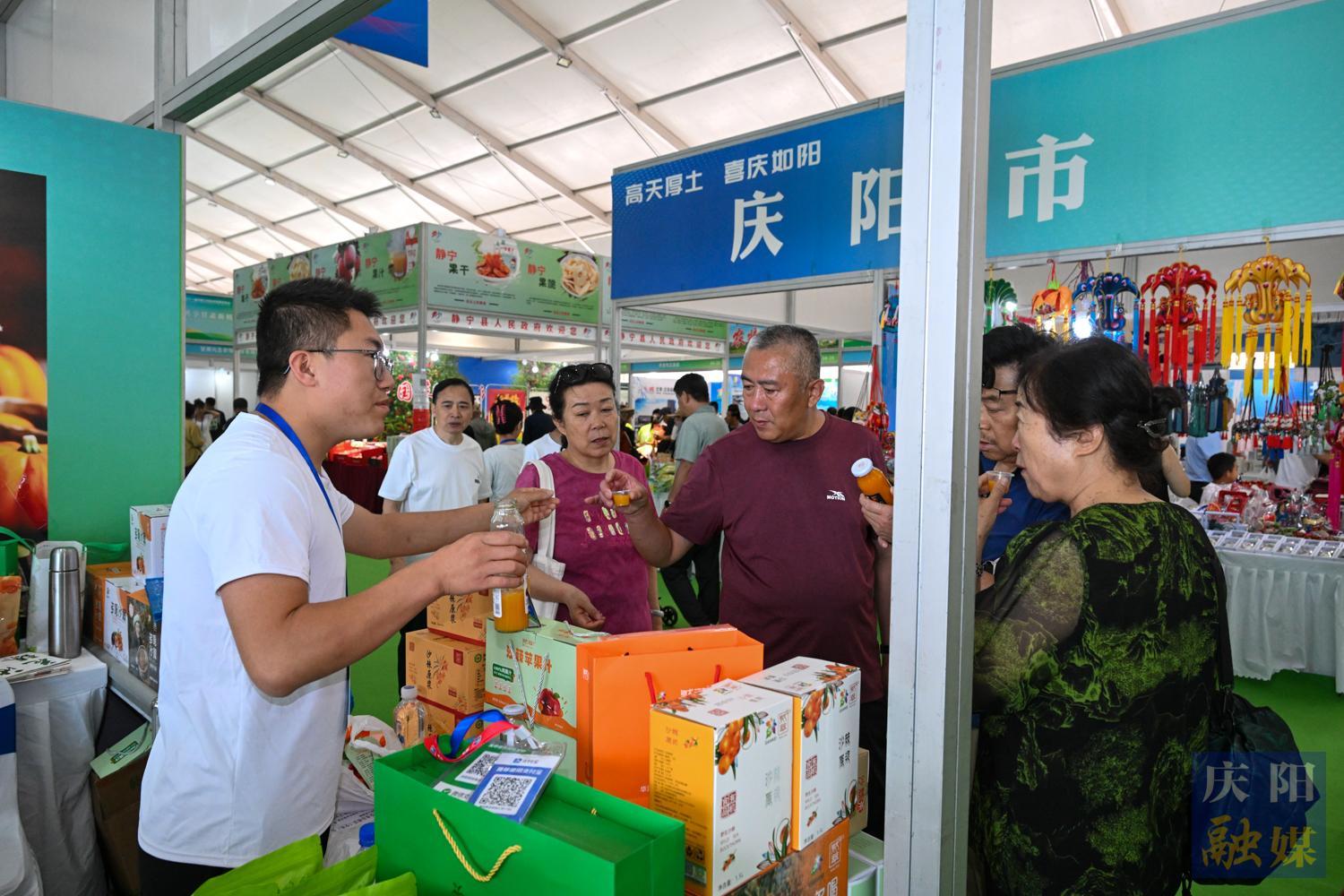 游客咨詢、品嘗慶陽(yáng)農(nóng)特產(chǎn)品。