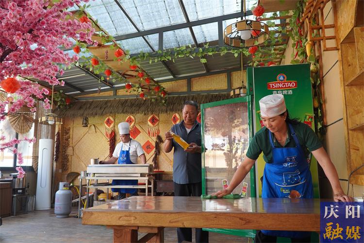 ▲田園燒烤坊工作人員做營業(yè)前的準(zhǔn)備。