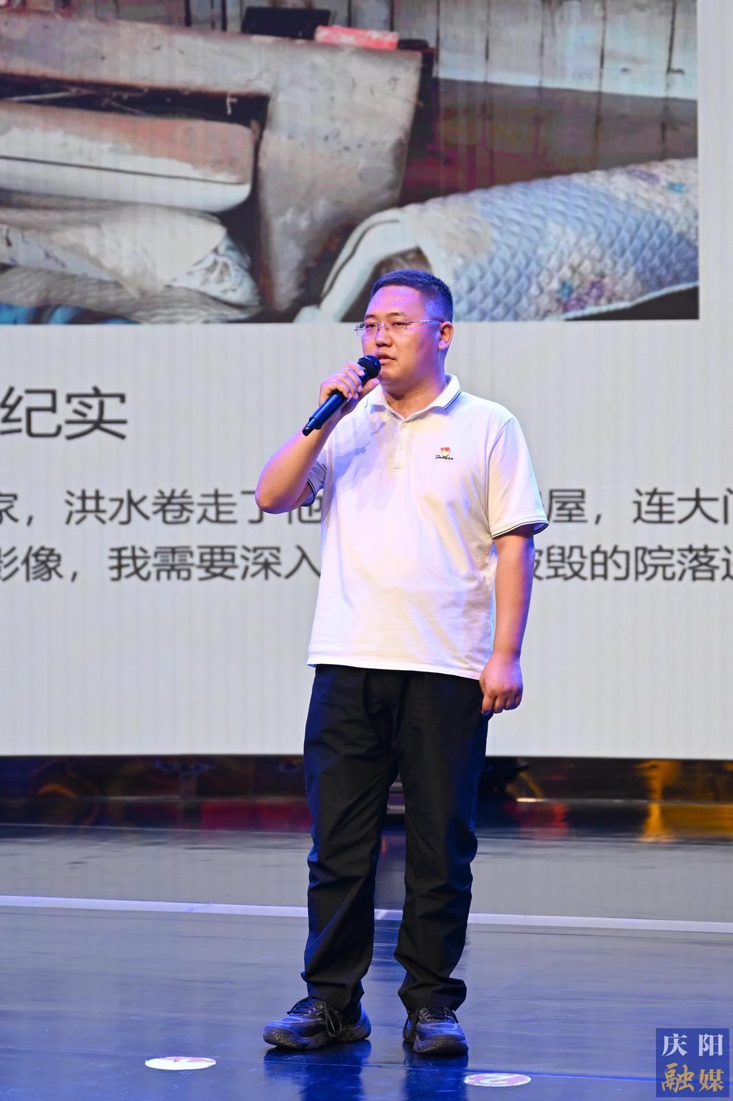 馬小隆作《腳下有泥 心中有光——一名記者在抗洪搶險救災(zāi)現(xiàn)場的“必修課》主題演講。