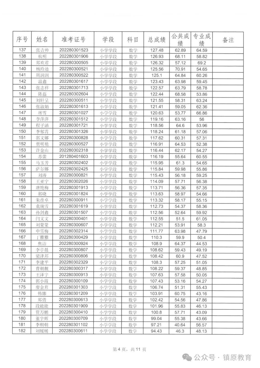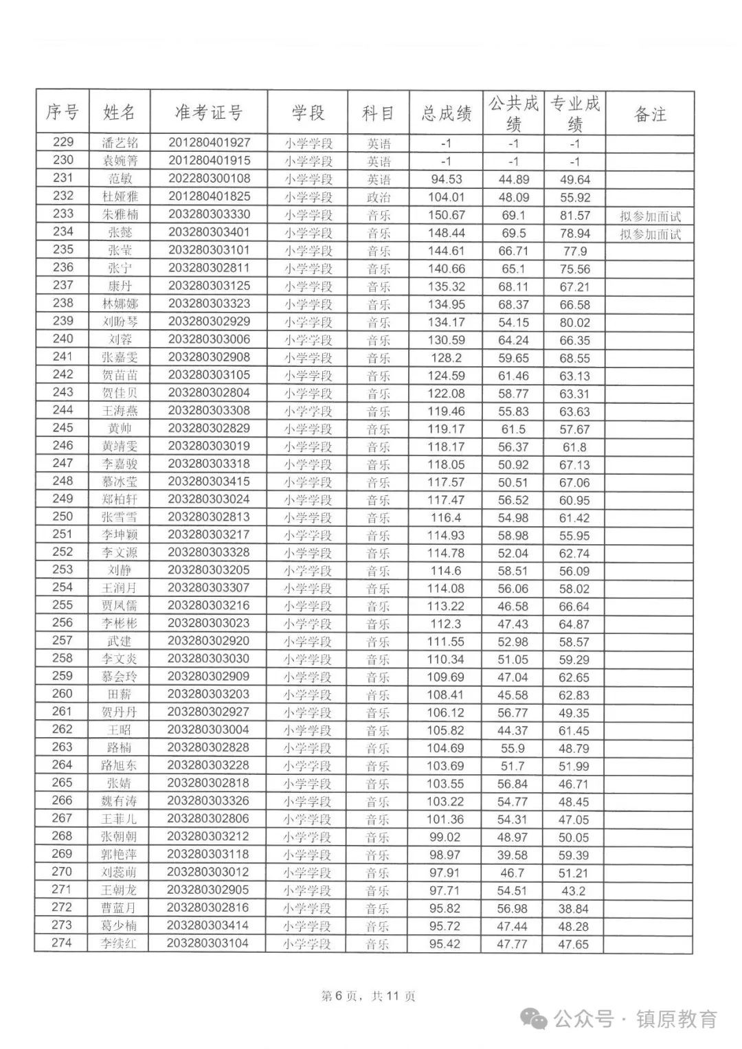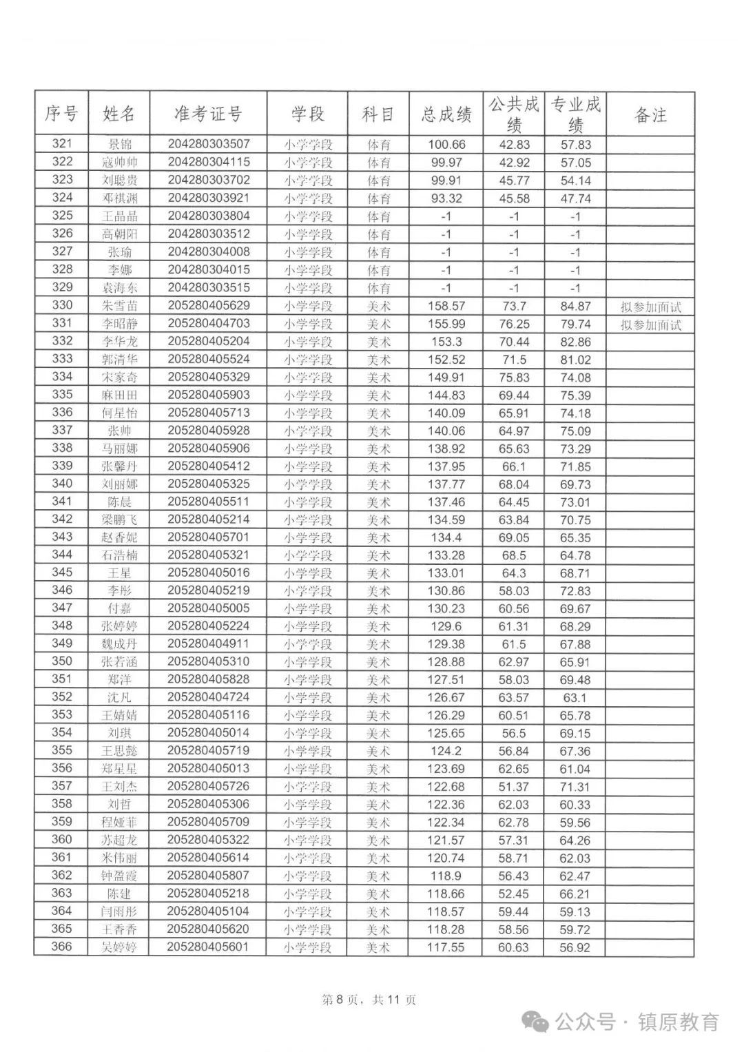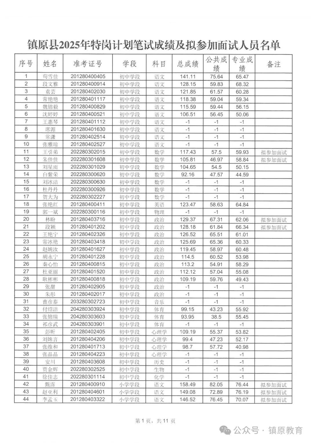 附件:鎮(zhèn)原縣2025年特崗計劃筆試成績及擬參加面試人員名單