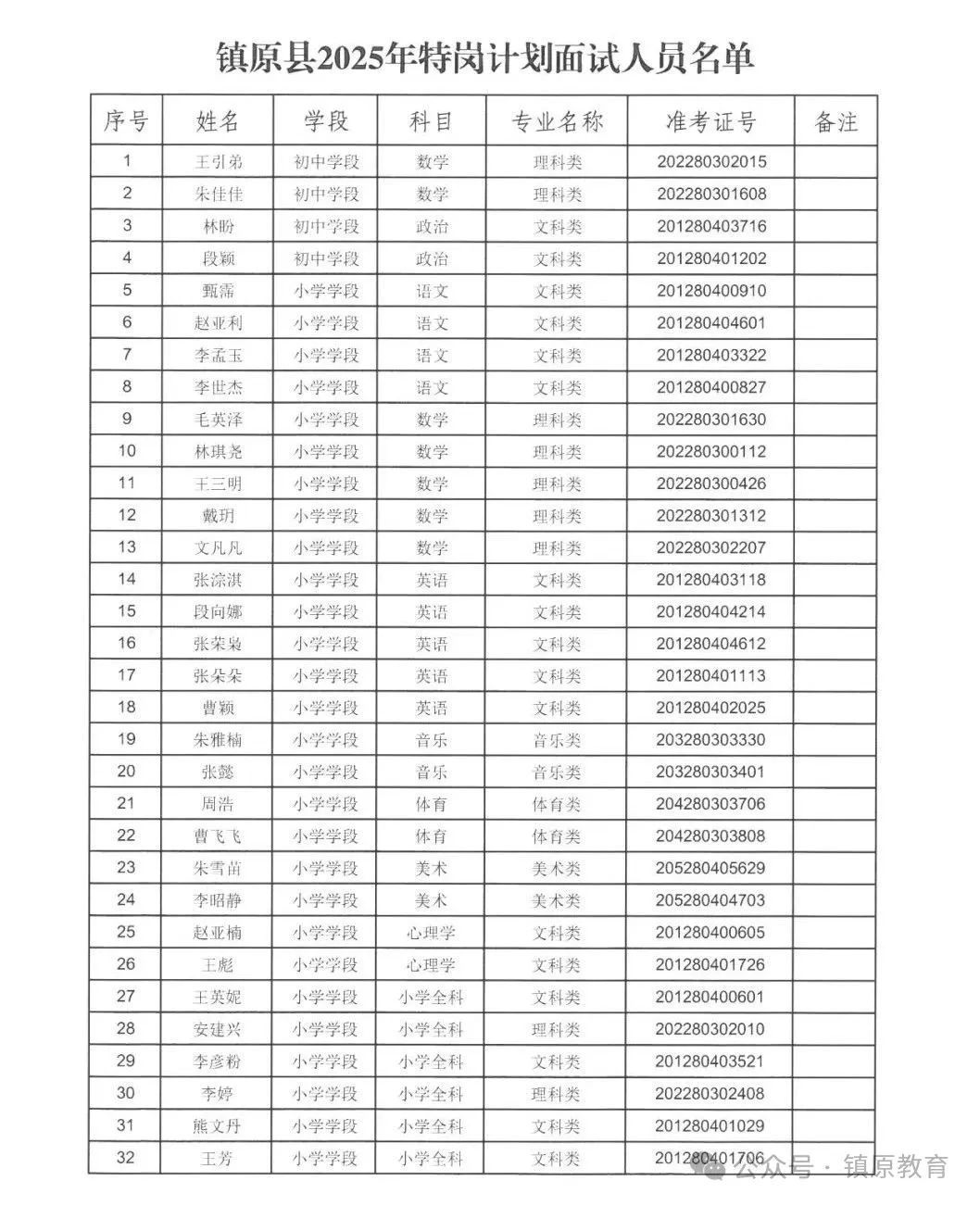 附件:鎮(zhèn)原縣2025年特崗計劃面試人員名單