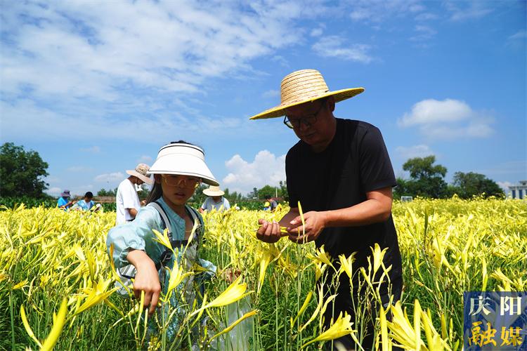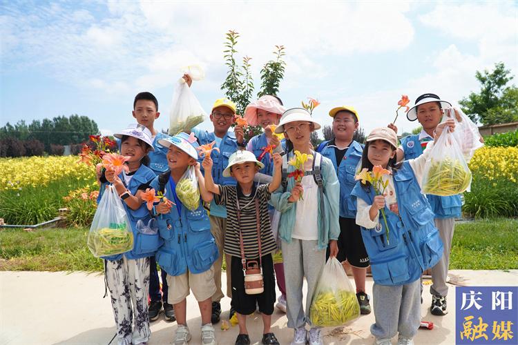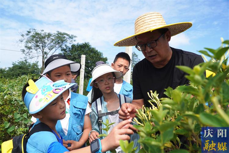 ▲小記者們體驗(yàn)金銀花、黃花菜采摘。