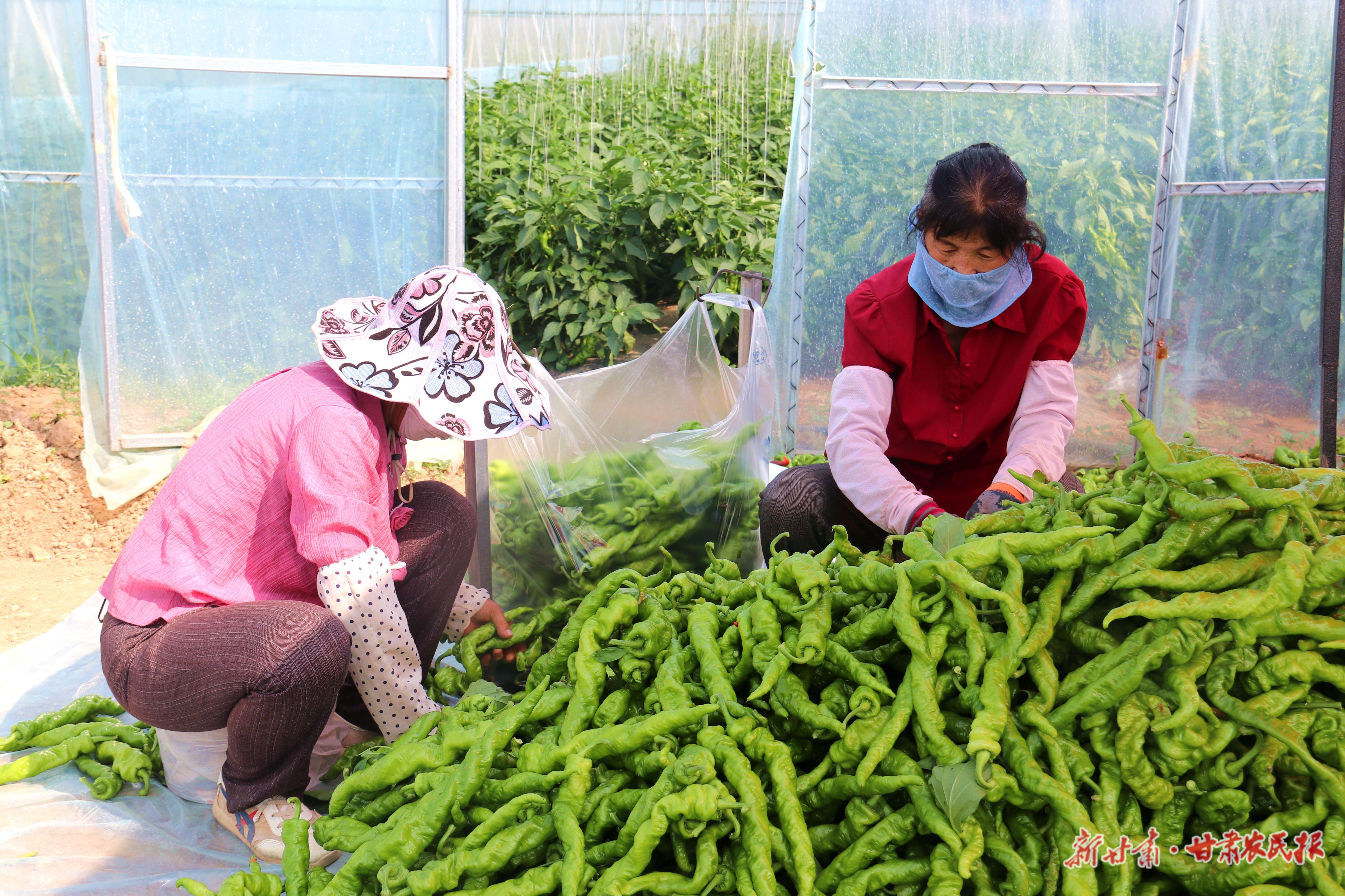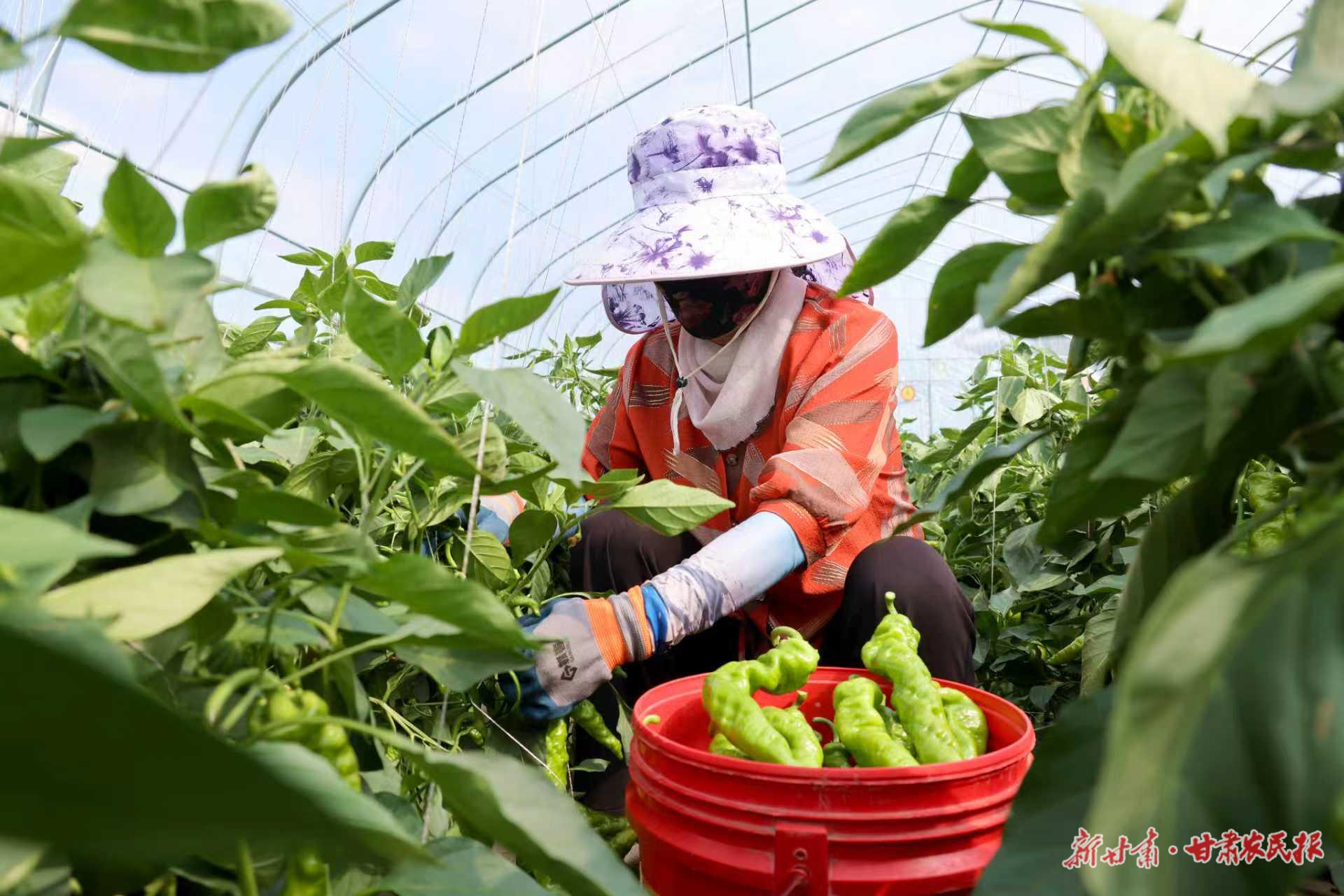 村民正在采摘頭茬辣椒。毛娜娜攝
