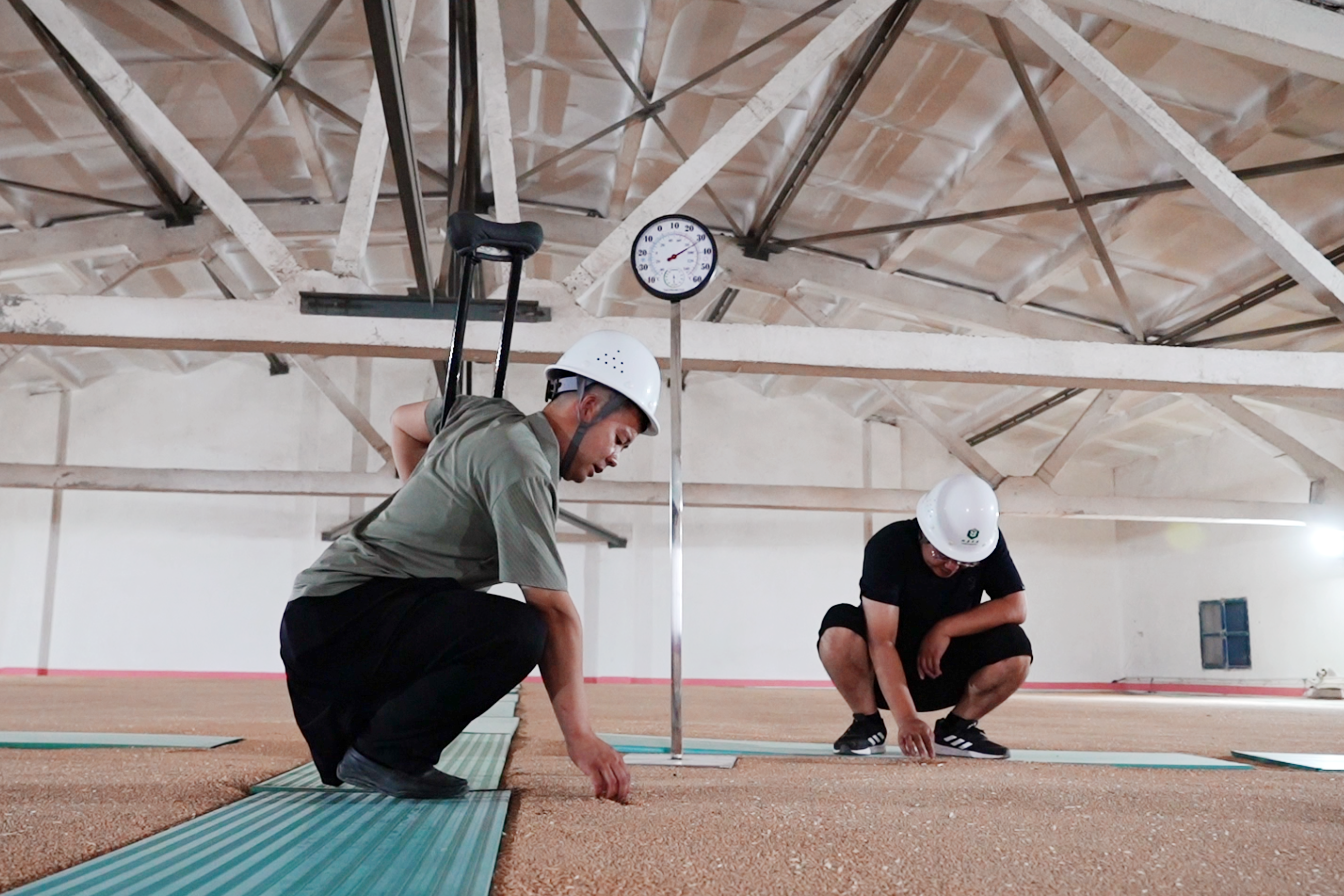 步入環(huán)縣民安糧油儲(chǔ)備有限公司的大門(mén),迎面是排列整齊的6幢糧倉(cāng),倉(cāng)房外側(cè)約6米高的鐵架臺(tái)階是每日查看糧情的必經(jīng)之路!常人都需走的小心翼翼,而郭建慧僅用一條腿、一只拐在這條“鐵架路”上風(fēng)雨無(wú)阻走過(guò)了五個(gè)年頭。