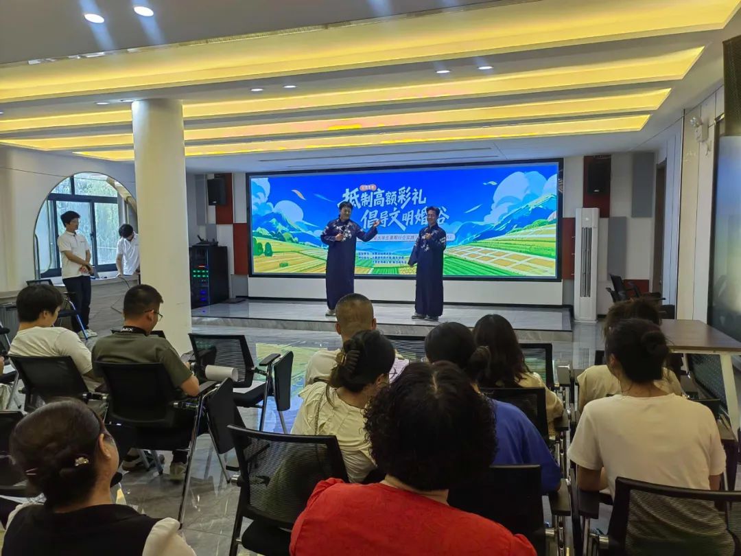 活動現場亮點紛呈。青年志愿者深情朗誦《訣別—高額彩禮的陰霾》,深刻揭示高額彩禮對家庭幸福的拖累;相聲《戲說彩禮》以幽默詼諧的語言,生動解構高額彩禮的積弊;小品《彩禮風波》則通過演繹家庭因彩禮引發(fā)的沖突與最終和解,生動詮釋了摒棄舊俗、踐行文明婚戀觀的重要性,引發(fā)觀眾共鳴。