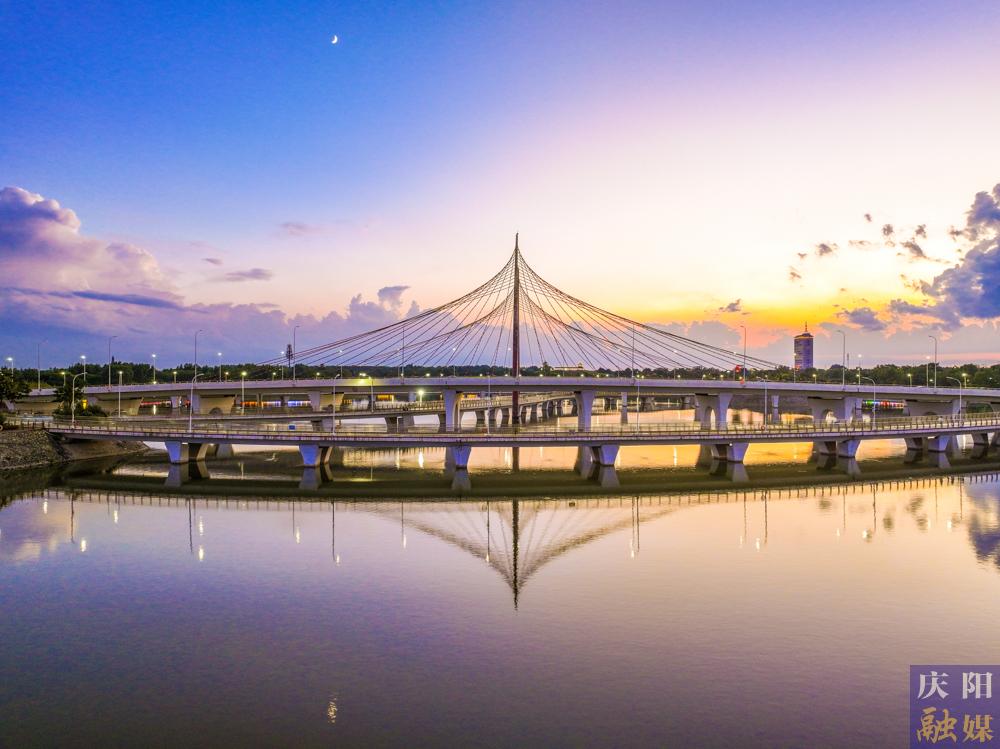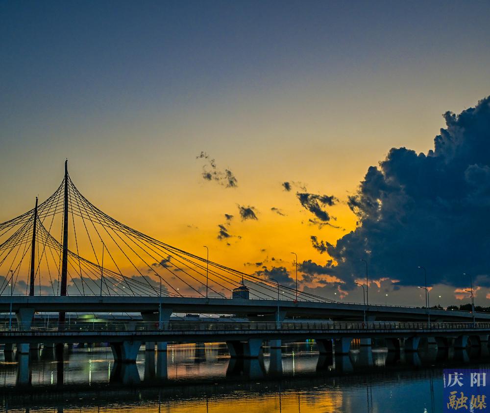 慶陽網(wǎng)訊(慶陽融媒記者 陳飛)7月29日,西峰城區(qū)迎來一場降雨,雨過天晴后,彩虹橋上空驚現(xiàn)絕美晚霞。落日余暉將天空染成橙紅色,與彩虹橋的絢麗色彩相互映襯,波光粼粼的水面也被染上金色,美輪美奐,吸引眾多市民駐足觀賞、拍照留念,繪就一幅浪漫迷人的城市畫卷。