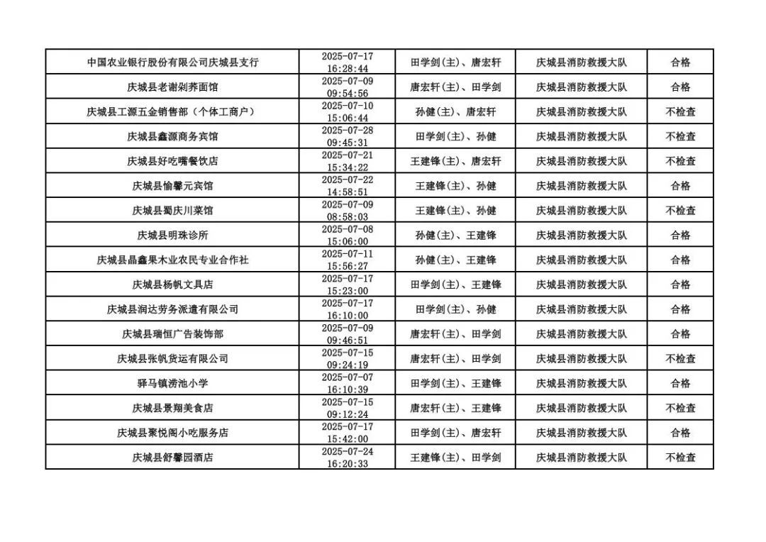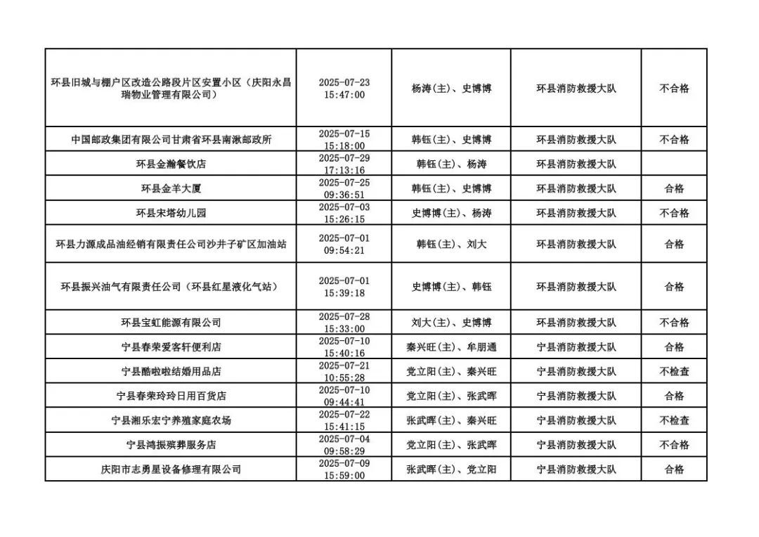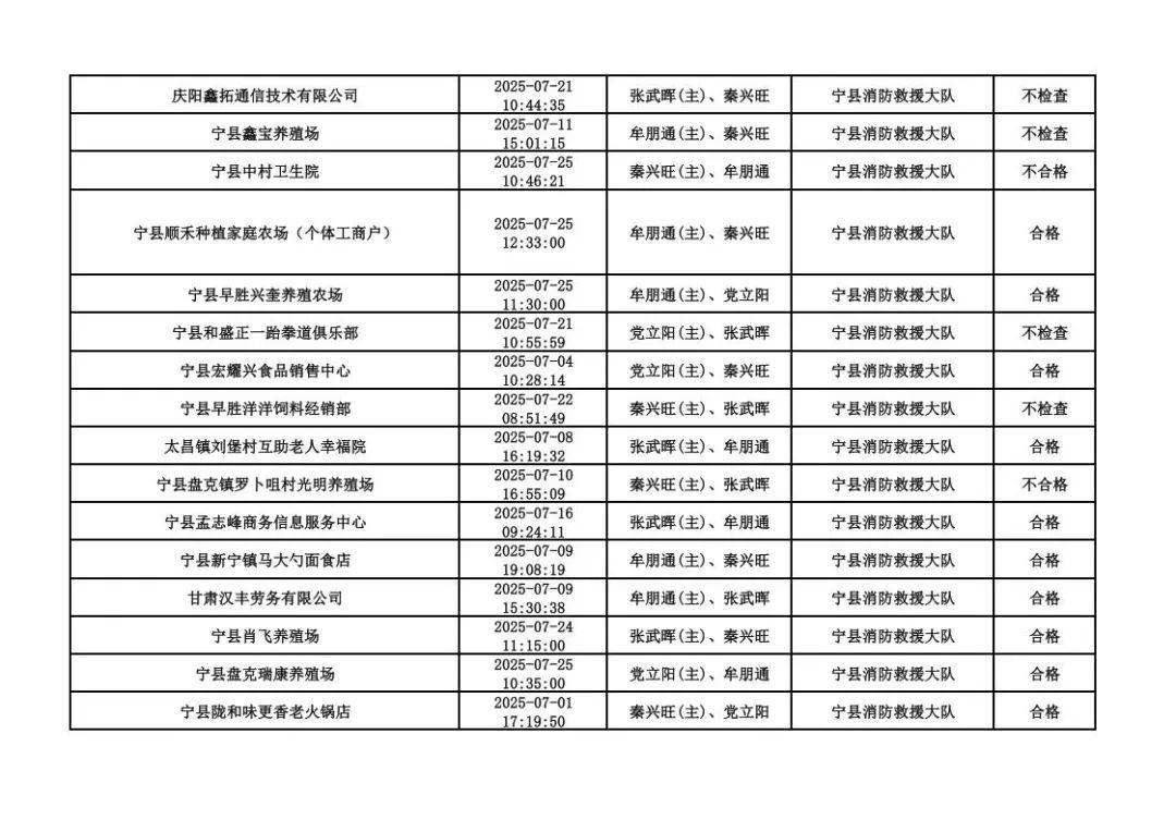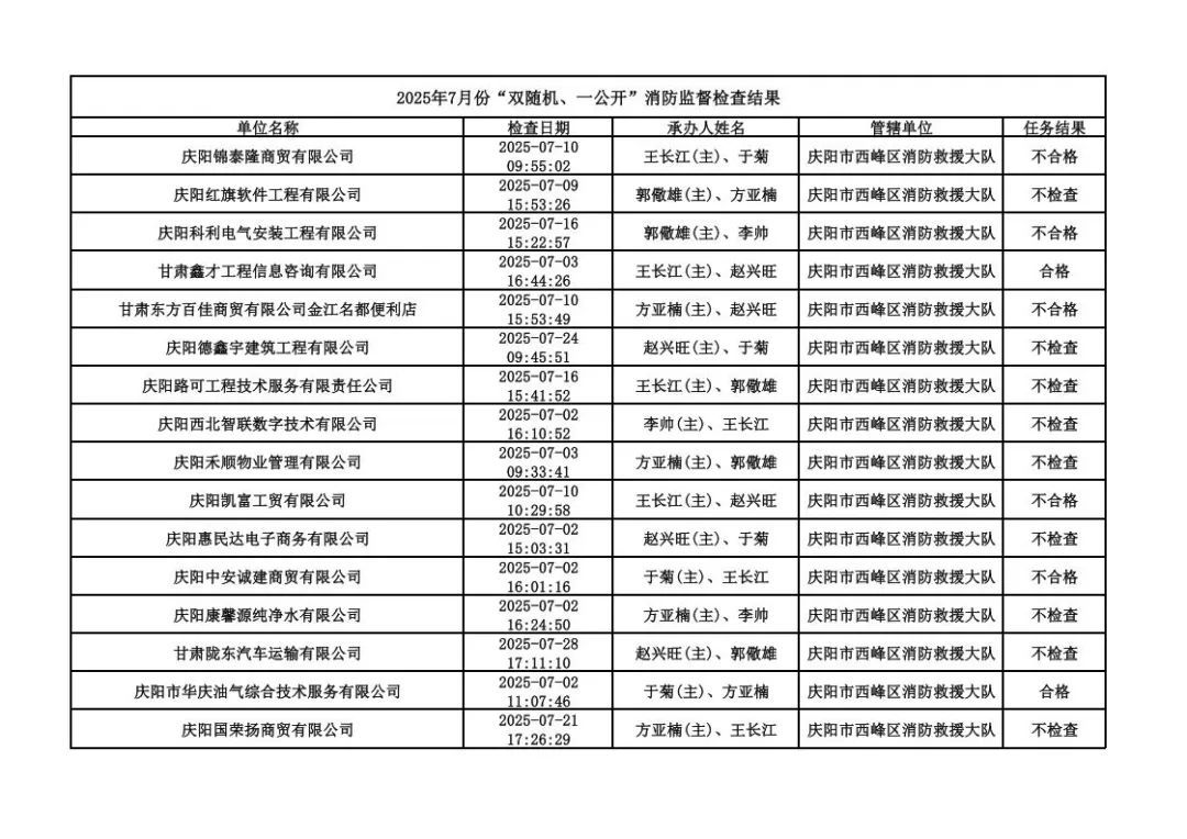 為貫徹落實《消防救援局關(guān)于全面推行“雙隨機、一公開”消防監(jiān)管工作的通知》(應(yīng)急消〔2019〕241號),認真組織實施“雙隨機、一公開”消防監(jiān)管工作,現(xiàn)將2025年7月份“雙隨機、一公開”消防監(jiān)督檢查結(jié)果及2025年8月份監(jiān)督抽查計劃公示如下: