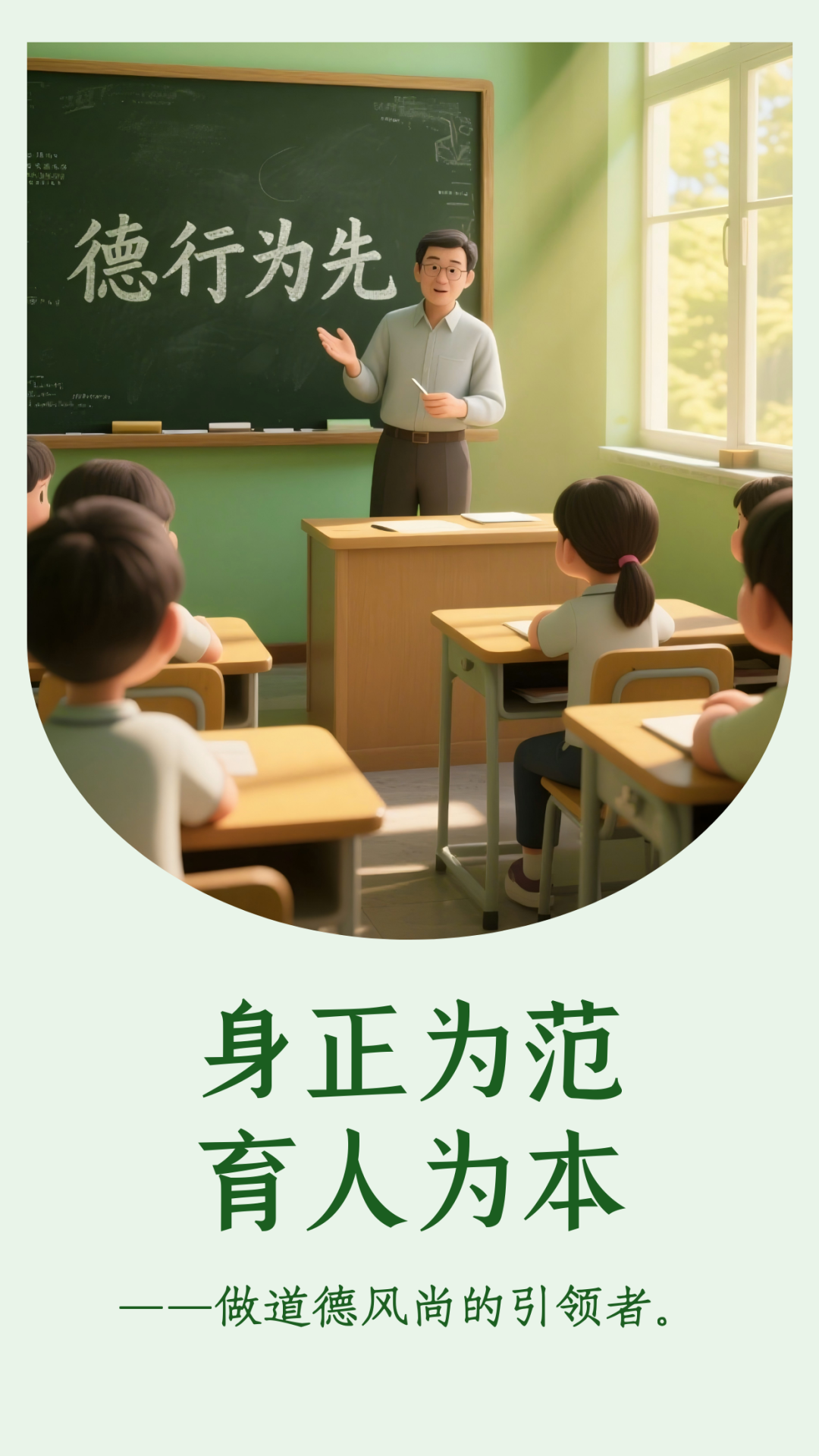 身正為范,育人為本——做道德風(fēng)尚的引領(lǐng)者?!皩W(xué)高為師,身正為范”。廣大教師當(dāng)堅(jiān)守教育初心,以清廉為鏡,拒收任何形式的禮品禮金,不參與任何形式的宴請,不讓師恩沾染功利色彩;以正氣為帆,用“潤物無聲”的言傳身教,為學(xué)子樹立“德行為先”的人生標(biāo)桿,讓清廉從教成為慶陽教育最鮮明的底色。