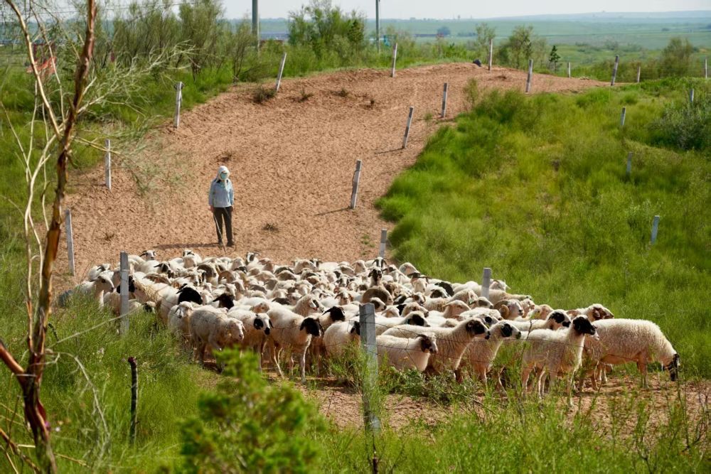 生態(tài)牧場里,灘羊“吃著中草藥,喝著弱堿水”,寧夏鹽池灘羊產(chǎn)業(yè)發(fā)展集團(tuán)有限公司以高于市場價10%的價格收購灘羊,帶動養(yǎng)殖戶穩(wěn)定增收。從羊肉分割到毛皮制作,從主題民宿到副產(chǎn)品開發(fā),灘羊已形成完整產(chǎn)業(yè)鏈,是當(dāng)?shù)馗幻駨?qiáng)縣的重要抓手。