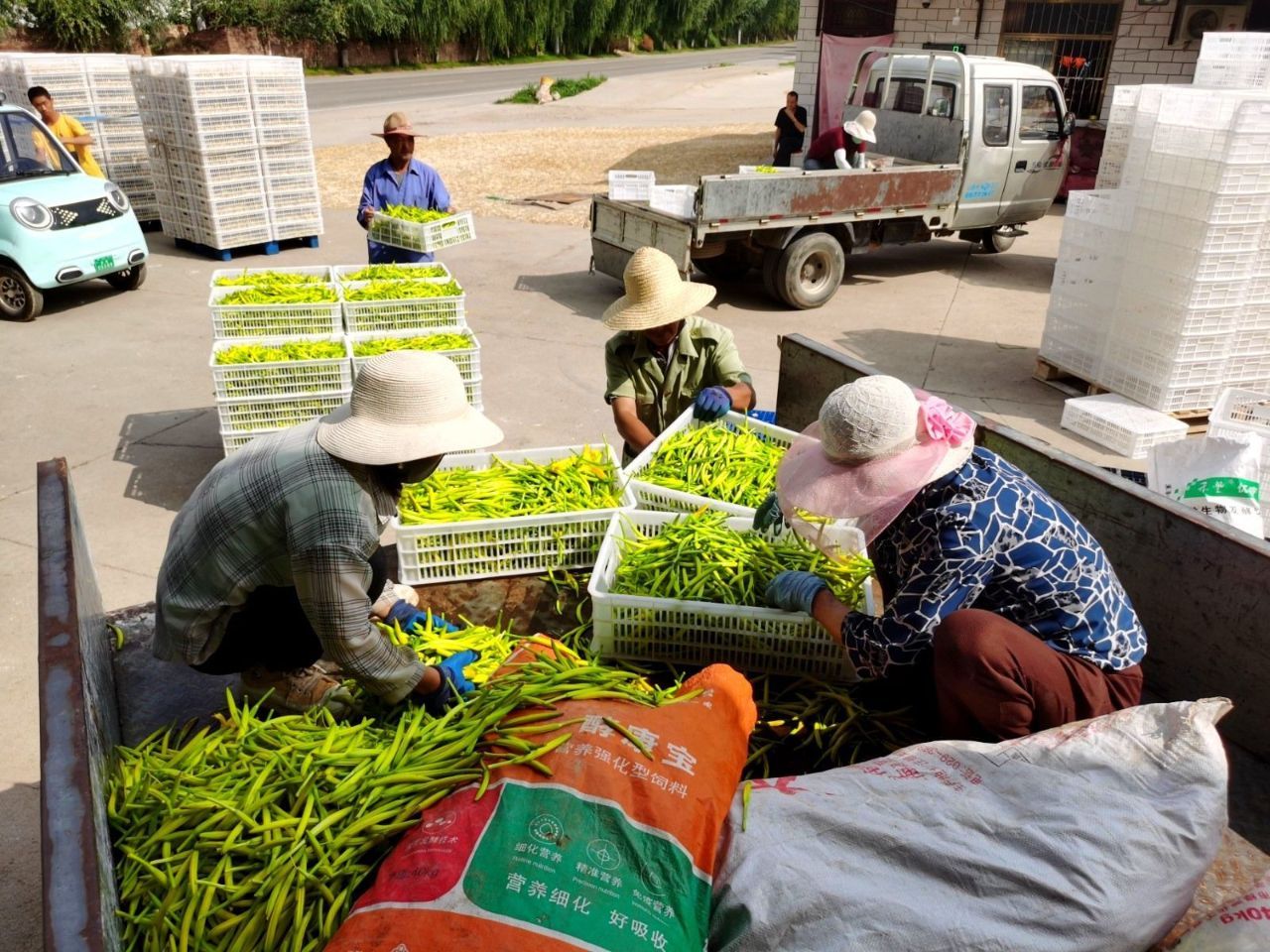 與田間繁忙的采摘場景相映的是各個收購點的熱鬧景象。在慶陽武平農產品經銷農民專業(yè)合作社、寧縣世鵬農副產品收購有限公司等黃花菜收購點,滿載新鮮黃花菜的小貨車、農用車絡繹不絕,前來交易黃花菜的收購商米文秀就是其中一位。這幾天,他駕駛著小貨車走村串戶,忙著收購新鮮黃花菜?!?月初起,我每天早上就前往一些鄉(xiāng)村路口和農戶家中收購新鮮黃花菜,量大的話每天能收三到五噸,量少的話也有一兩噸。”米文秀說。