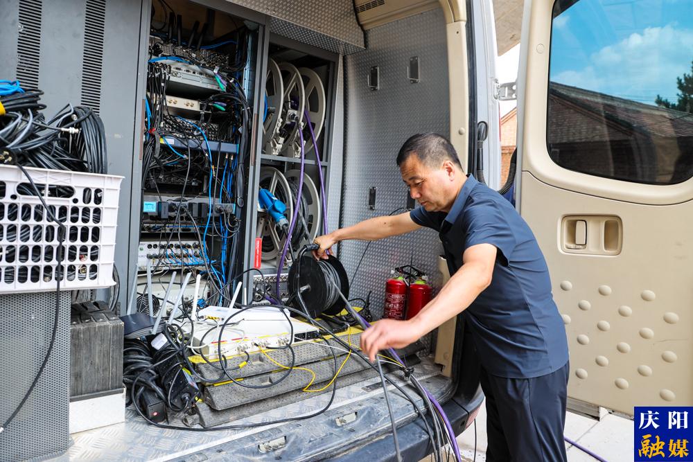 8月7日,開幕式前夕,慶陽融媒直播組提前進入比賽現(xiàn)場,緊鑼密鼓地進行準備,全力做好網(wǎng)絡(luò)布線、機位搭建、信號測試、直播排練等工作,確保開幕式及后續(xù)比賽直播的順利進行。