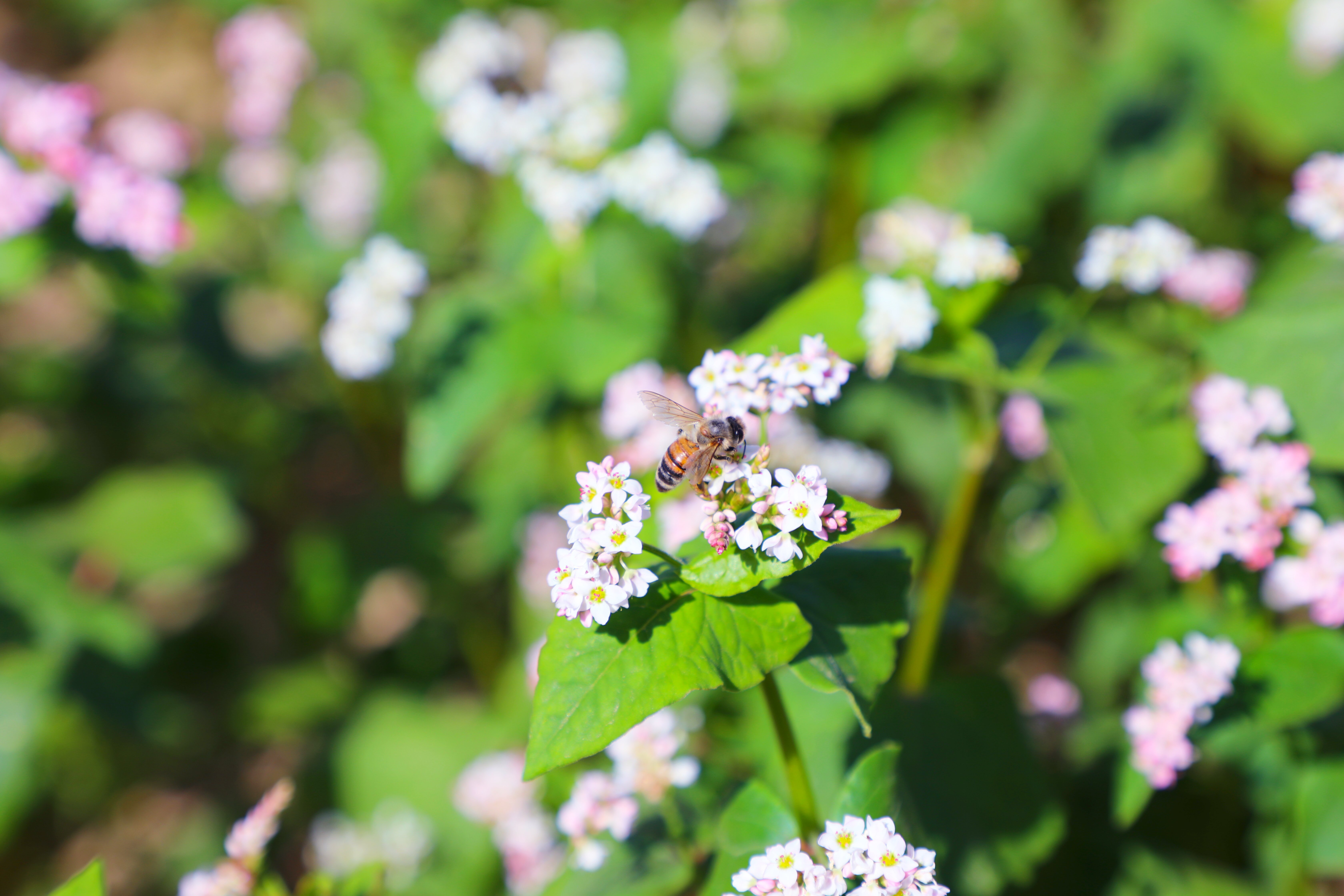 成群的蜜蜂醉在花海,嗡嗡穿梭