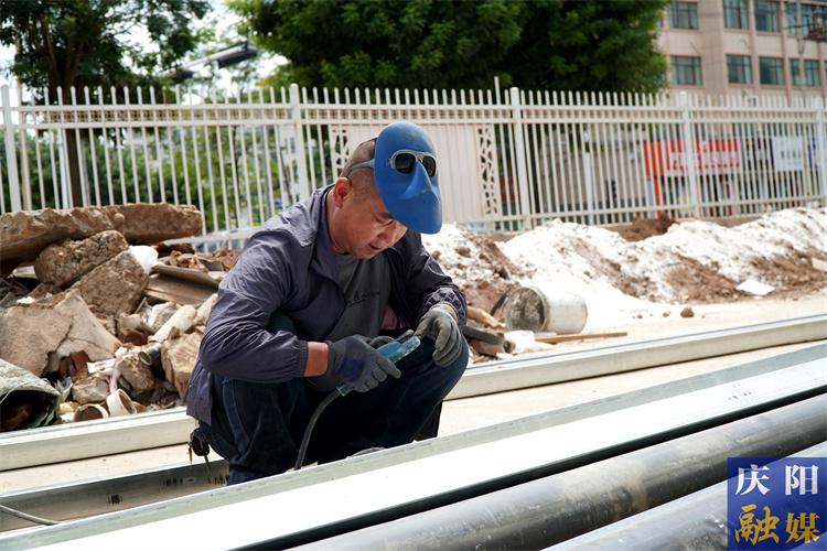 走進施工現(xiàn)場,大樓外墻,幾名泥匠師傅正站在腳手架上,手持抹刀,將一方方水泥均勻涂抹在墻體上;大樓四周,管道工們正忙著將雨水管道固定在一道道深溝中;鋼筋加工區(qū),切割師傅手持切割機,正按照施工圖紙的要求,將長長的鋼筋分割成不同規(guī)格的短材……