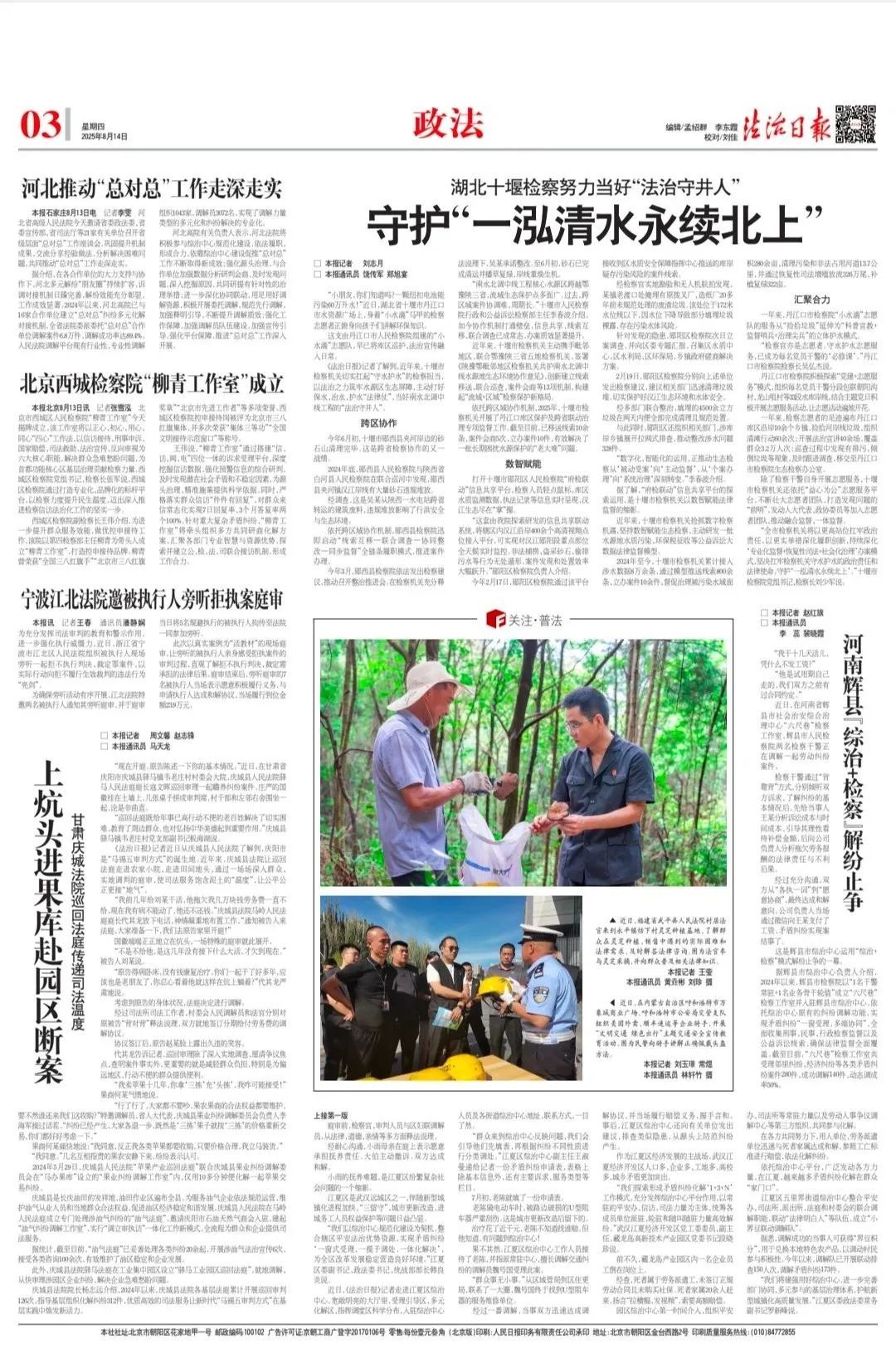 2025年8月14日,《法治日?qǐng)?bào)》刊發(fā)《上炕頭進(jìn)果庫(kù)赴園區(qū)斷案 甘肅慶城法院巡回法庭傳遞司法溫度》。
