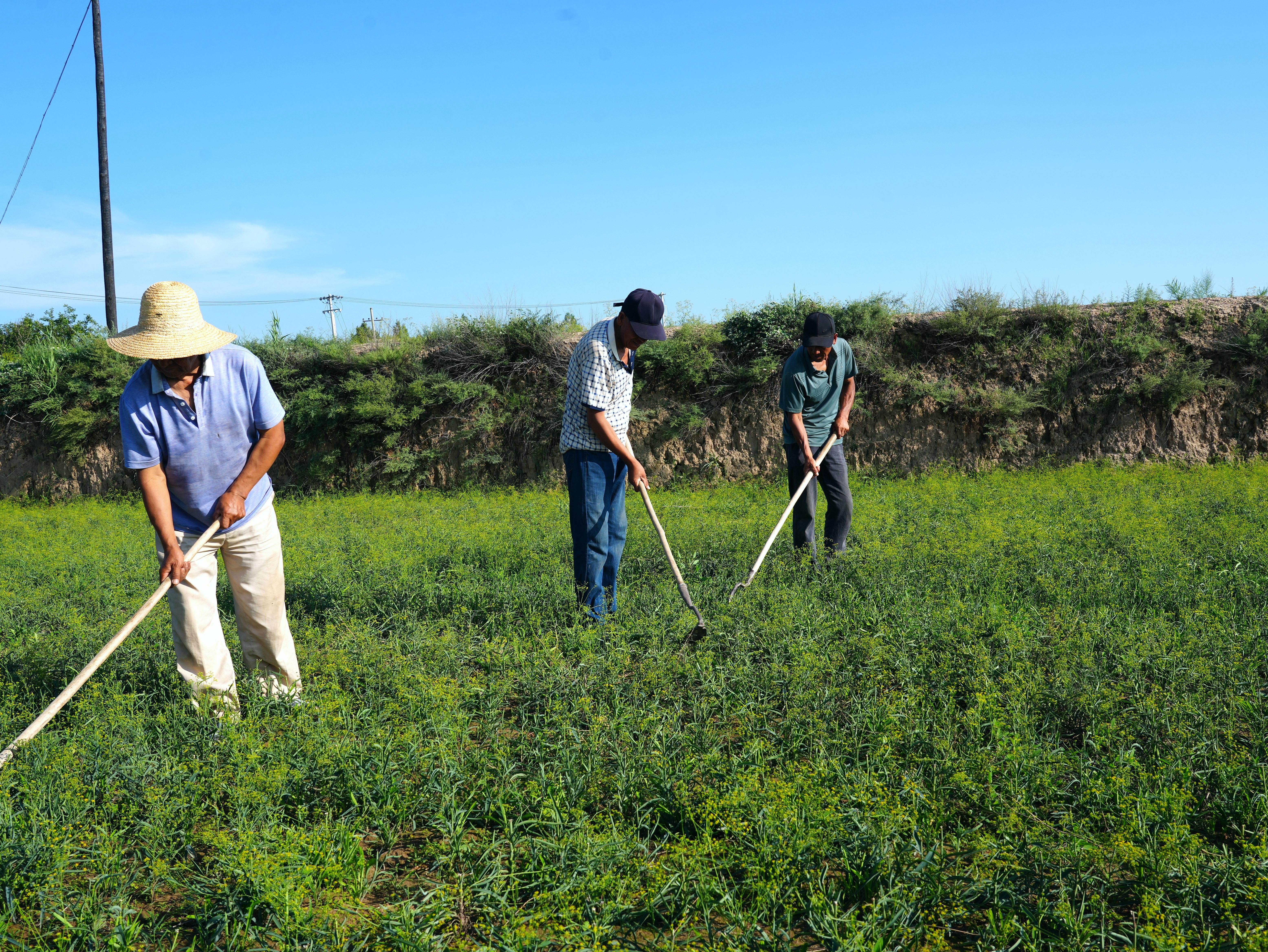 而在秦團莊鄉(xiāng)的田間地頭,同樣是一片繁忙景象。走進秦團莊鄉(xiāng)新集子村,一片片中藥材長勢喜人,綠意盎然的黃芪、黃芩,生機勃勃的板藍根、柴胡,共同構成了一幅充滿希望的鄉(xiāng)村畫卷。田野間,村民們正忙著培土除草,他們指尖的動作嫻熟又麻利,臉上洋溢著對豐收的期待。
