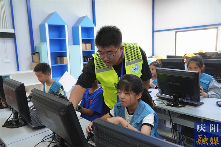 ▲工作人員指導(dǎo)小記者進(jìn)行無(wú)人機(jī)實(shí)景操控。
