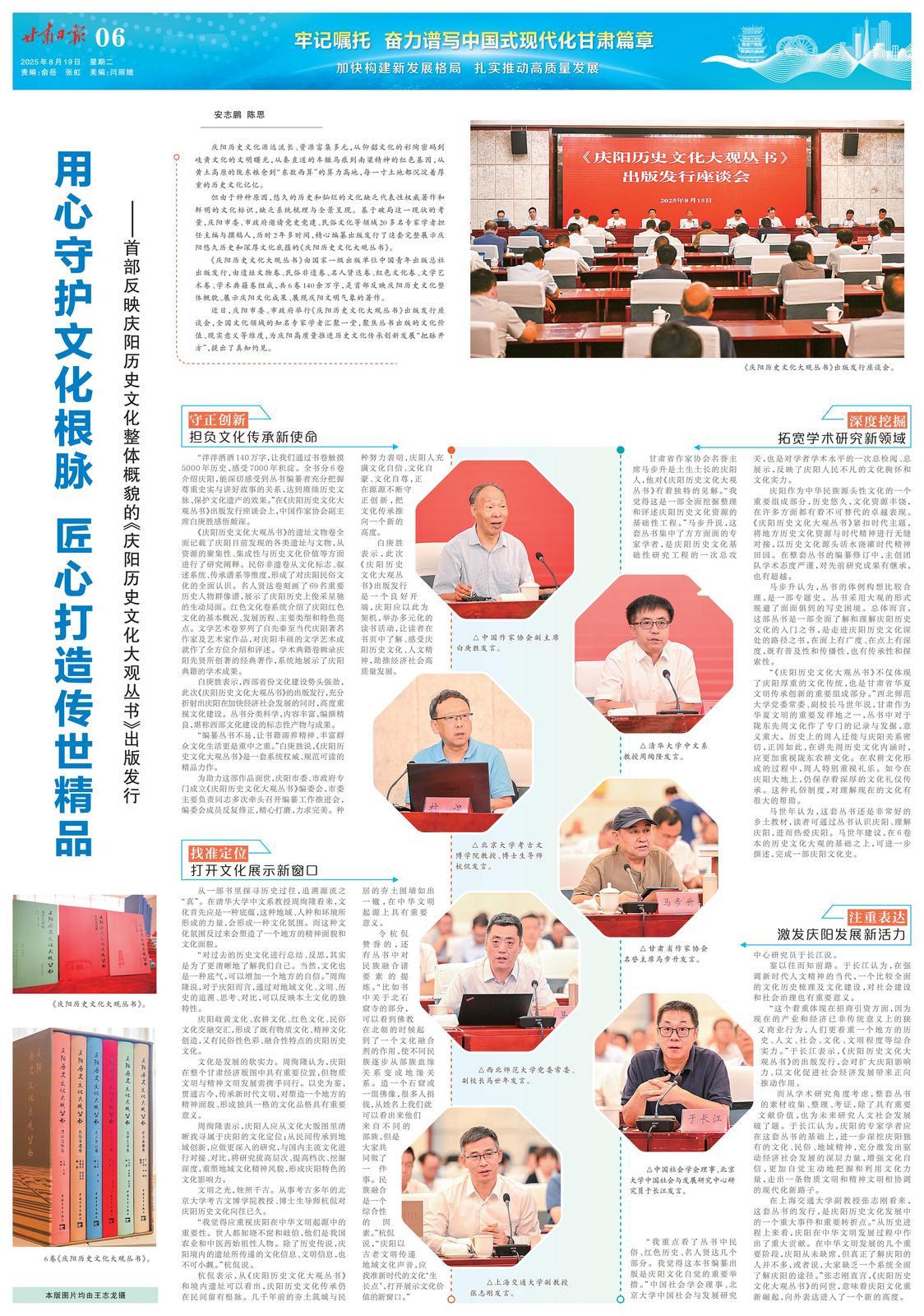 “編纂?yún)矔灰?,讓書籍濡養(yǎng)精神、豐富群眾文化生活更是重中之重。”白庚勝說,《慶陽歷史文化大觀叢書》是一套系統(tǒng)權(quán)威、規(guī)范可讀的精品力作。