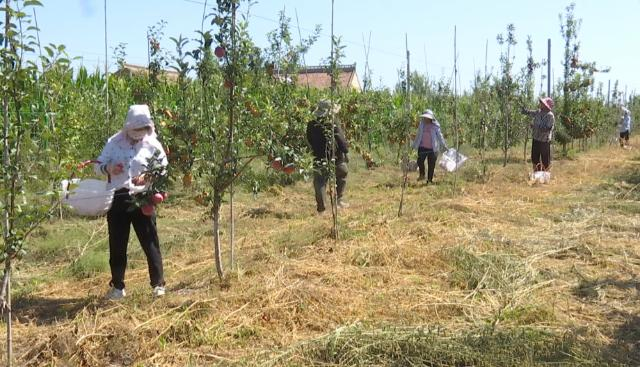 崔小兵說:“魯麗蘋果熟了,在家里也閑著,一天過來還掙100多塊錢,給家里添份收入?!?/p>