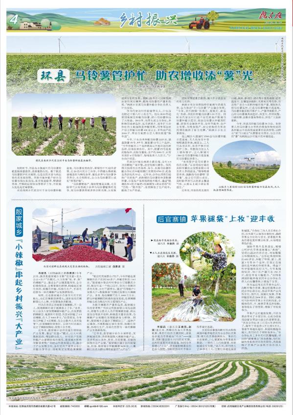 今年,環(huán)縣共種植馬鈴薯30萬(wàn)畝。長(zhǎng)勢(shì)喜人的馬鈴薯也由傳統(tǒng)的糧食作物變成環(huán)縣種植業(yè)中經(jīng)濟(jì)效益顯著的經(jīng)濟(jì)作物,讓群眾“家門口就業(yè)”從愿景變?yōu)楝F(xiàn)實(shí),也讓豐收的“薯”光映照出鄉(xiāng)村振興的幸福底色。