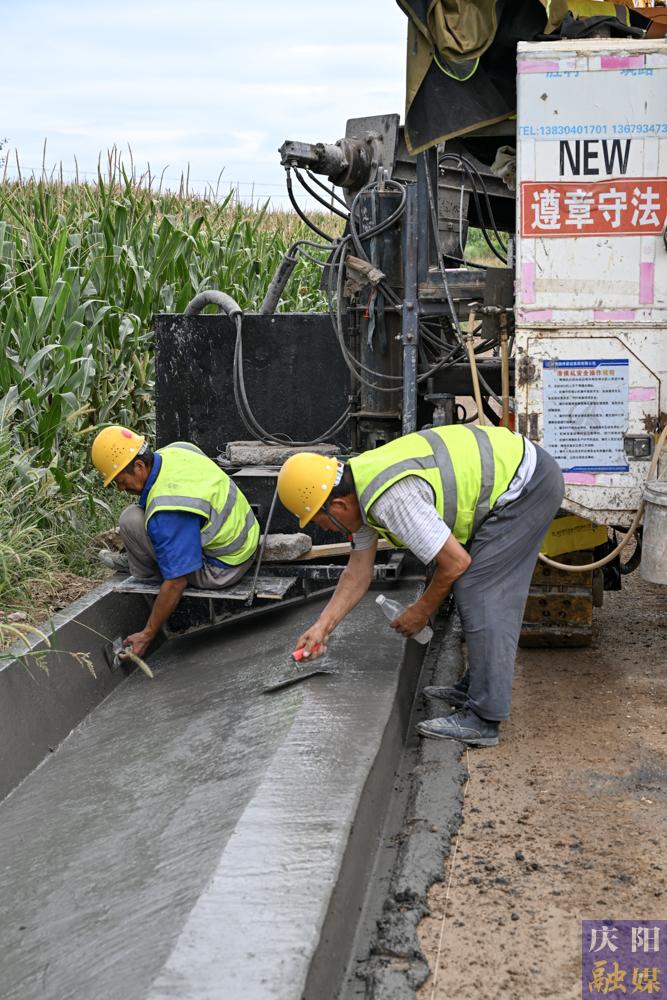 慶陽網(wǎng)訊(慶陽融媒記者 陳飛 魏博慶)8月22日,記者來到S501線五頃塬至三嘉公路(張村至劉家店段)改建工程建設現(xiàn)場,工人們正在相互協(xié)作,進行附屬邊溝施工。