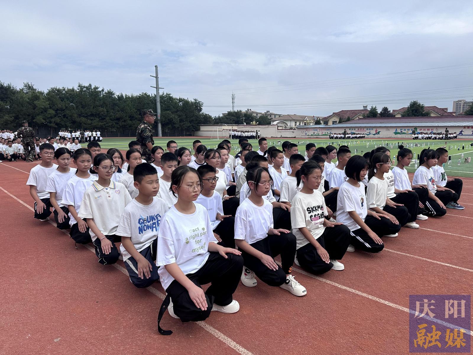 西峰區(qū)黃官寨實驗學(xué)校初一新生開展軍訓(xùn)。