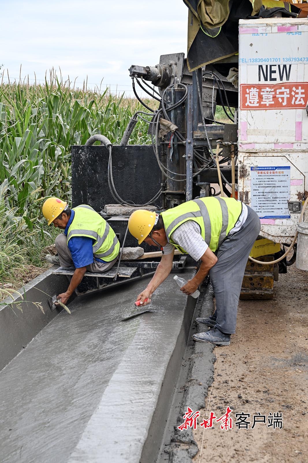 8月22日,位于正寧縣境內(nèi)的S501線五頃塬至三嘉公路改建工程建設(shè)現(xiàn)場,工人正在相互協(xié)作,進(jìn)行附屬邊溝施工。