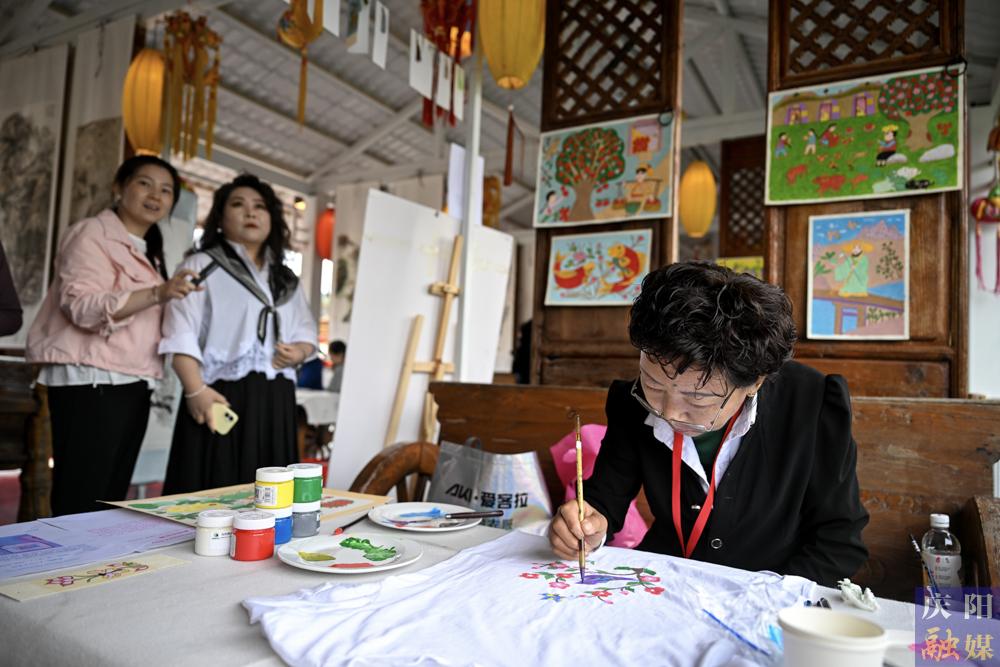畫家現(xiàn)場創(chuàng)作服裝彩繪。