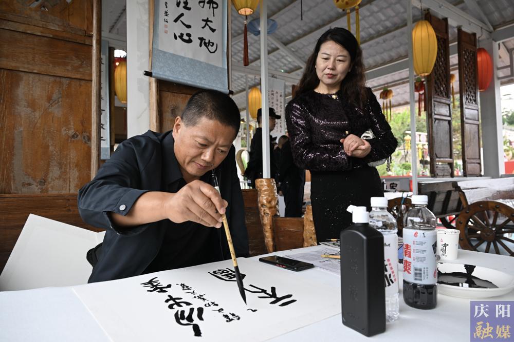 游客觀看爭做文明有禮慶陽人(慶城人)”主題展。