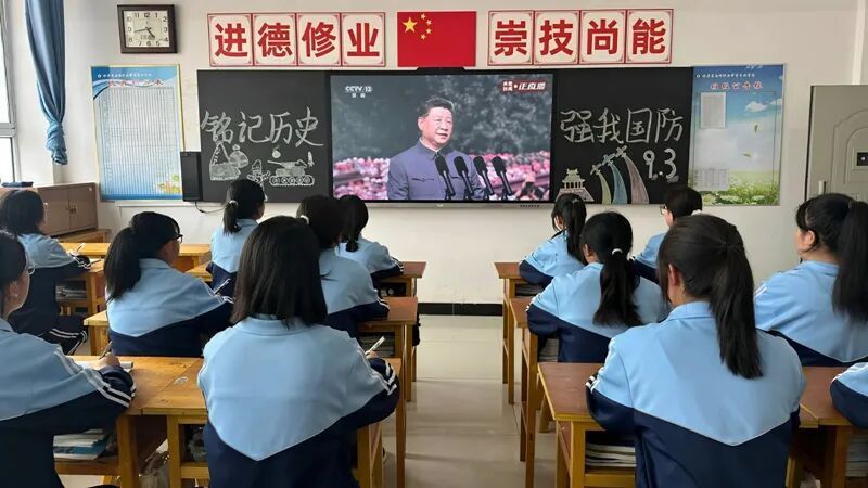 在西峰職業(yè)中專和顯勝實驗學(xué)校,師生們?nèi)逃^看閱兵盛典,共同見證這一莊嚴(yán)而偉大的時刻。