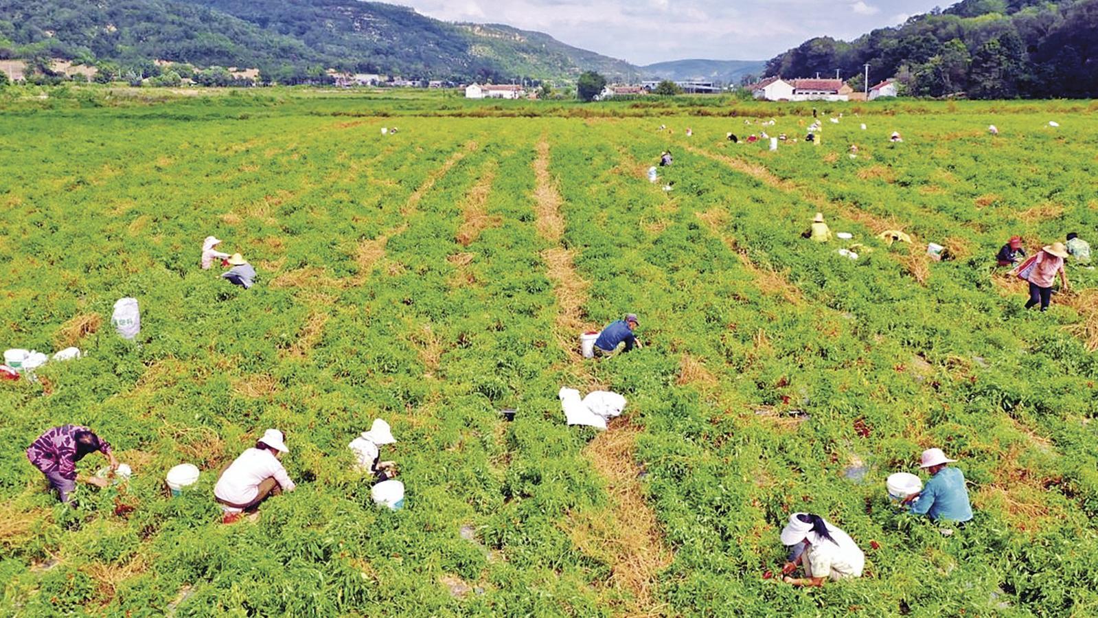 初秋時節(jié),寧縣湘樂鎮(zhèn)的辣椒地里,飽滿的朝天椒綴滿枝頭,群眾穿梭其間,動作嫻熟地采摘、搬運,勾勒出一幅火紅的豐收畫卷。 湘樂鎮(zhèn)圍繞“辣椒小鎮(zhèn)”建設(shè)目標(biāo),通過實施“黨支部+龍頭企業(yè)+合作社+農(nóng)戶”模式,讓黨組織真正嵌入產(chǎn)業(yè)鏈,讓黨員力量凝聚在每一個生產(chǎn)環(huán)節(jié),成為產(chǎn)業(yè)發(fā)展的堅強(qiáng)支撐。今年,全鎮(zhèn)朝天椒種植面積達(dá)8000畝,預(yù)計總產(chǎn)量可達(dá)1.2萬噸,年總產(chǎn)值將突破4000萬元,實現(xiàn)規(guī)模與質(zhì)量的雙提升。