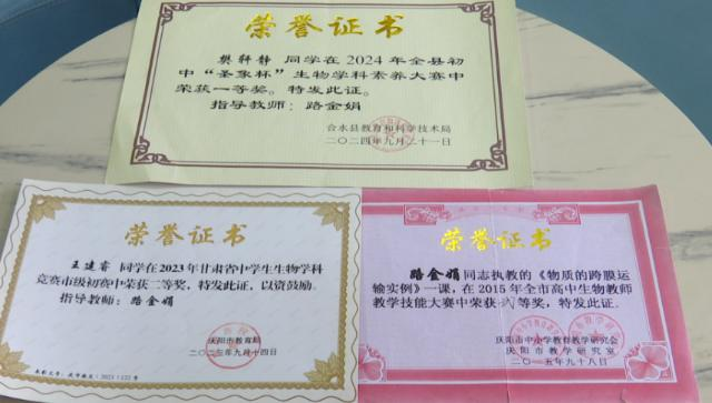 “嚴(yán)管厚愛”是路金娟擔(dān)任班主任14年來的育人準(zhǔn)則。她既關(guān)注學(xué)生綜合素質(zhì)培養(yǎng),也重視個(gè)性發(fā)展,指導(dǎo)學(xué)生參與各類生物競賽均獲市級獎(jiǎng)項(xiàng)。生活中,她愛生如子,多次走訪困難學(xué)生家庭、幫他們解決實(shí)際問題;她關(guān)注后進(jìn)生成長、培養(yǎng)特長生,還注重學(xué)生心理健康教育,學(xué)生違紀(jì)時(shí)總能耐心說服引導(dǎo)。在她的管理下,所帶班級班風(fēng)正、學(xué)風(fēng)濃,多次獲評先進(jìn)班集體,她本人也多次榮獲校級“優(yōu)秀班主任”稱號。