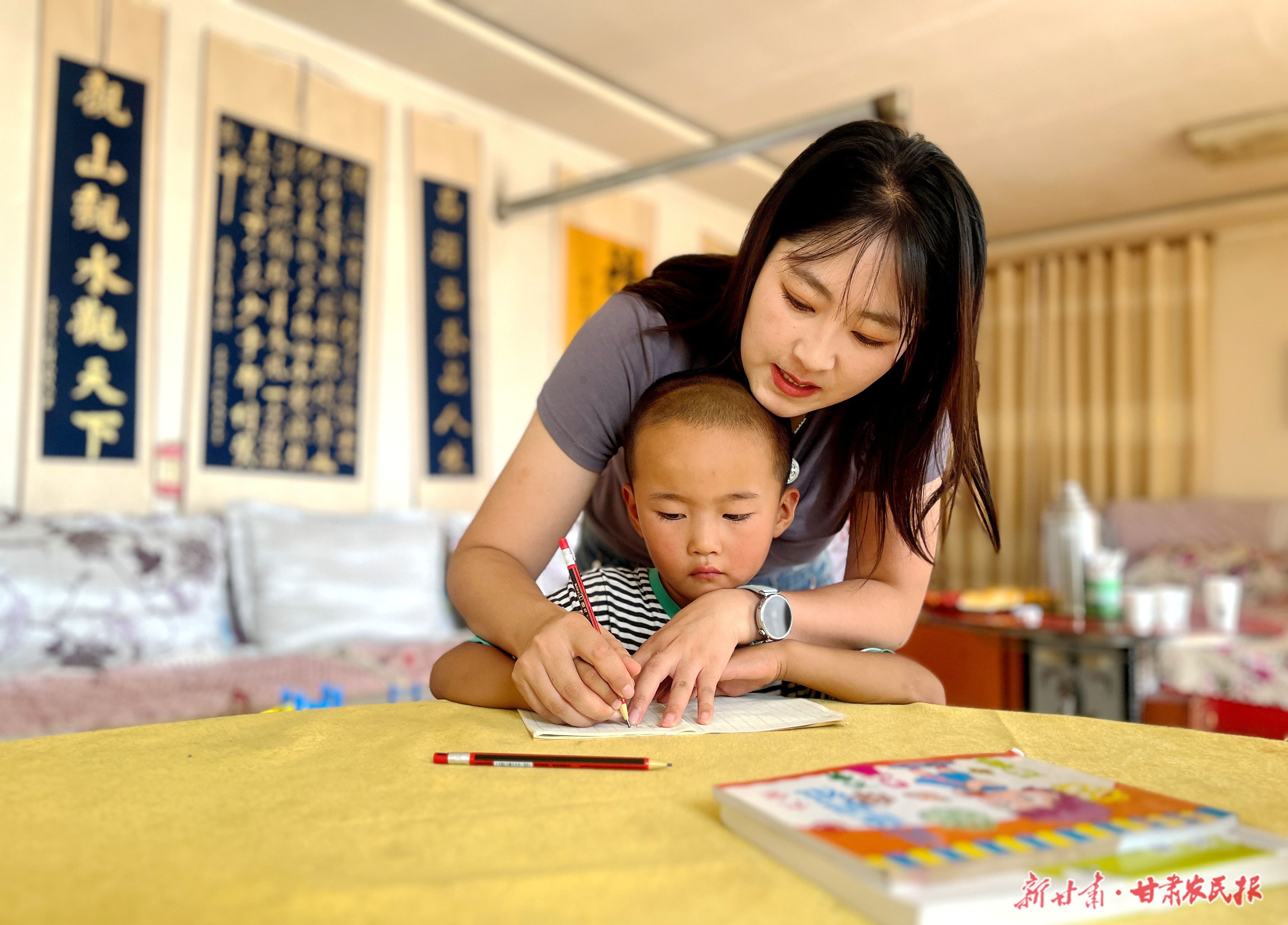 “今天你想學(xué)什么字,何媽媽教你?!薄拔蚁雽懽约旱拿??!痹谖鞣鍏^(qū)彭原鎮(zhèn)鄢旗坳村,“愛心媽媽”何娜娜正握著5歲結(jié)對兒童孫維希的手,一筆一畫教他寫下自己的名字。