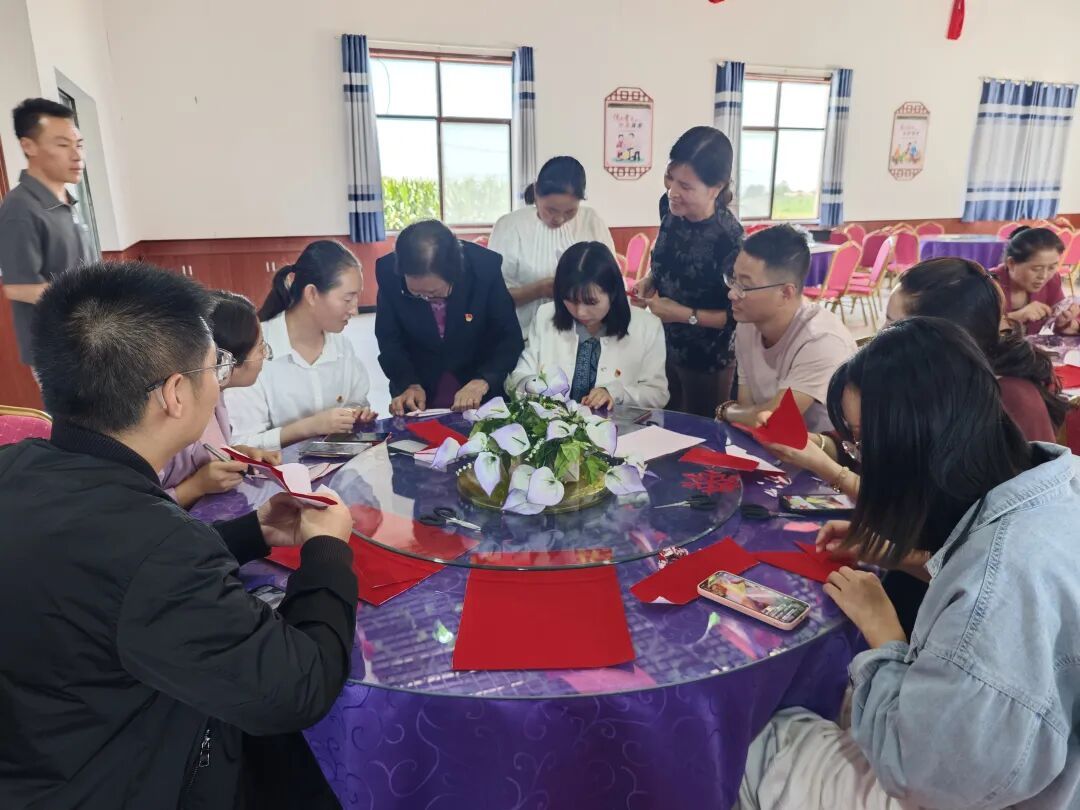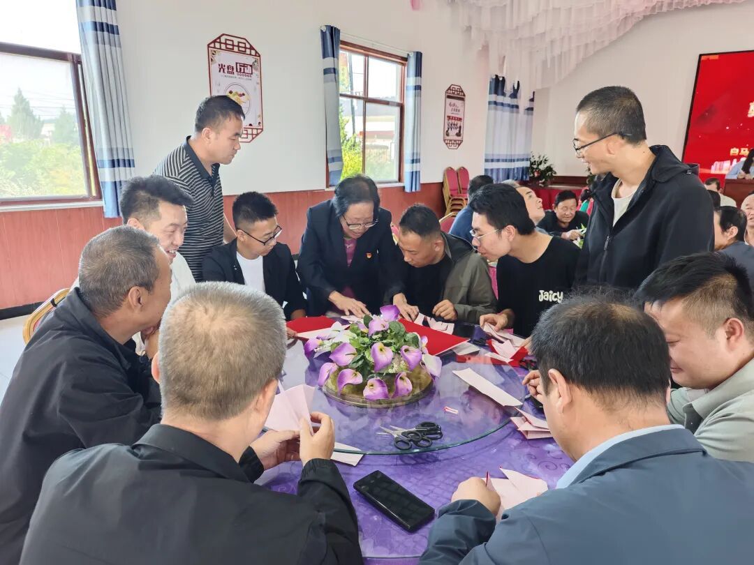 “大家看這張‘黨徽’剪紙,每一個線條都鐫刻著信仰與力量……”為迎接中華人民共和國成立76周年,在九月的主題黨日活動中,白馬鋪鎮(zhèn)機關黨支部與三里店村黨支部聯(lián)合舉辦了一堂別開生面的紅色剪紙微黨課。雪秀梅以“黨員與非遺傳承人”的雙重身份,用剪刀作筆、紅紙為卷,將黨史故事凝于指尖,分享自己用剪紙宣傳黨的政策、服務群眾的故事,樸實話語打動人心,吸引了70余名黨員參與,讓黨史學習從“照本宣科”升級為沉浸式、互動式的文化體驗。