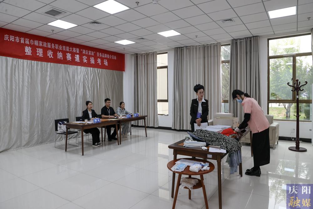慶陽市首屆巾幗家政服務職業(yè)技能大賽暨“津慶家政”勞務品牌推介活動現(xiàn)場。